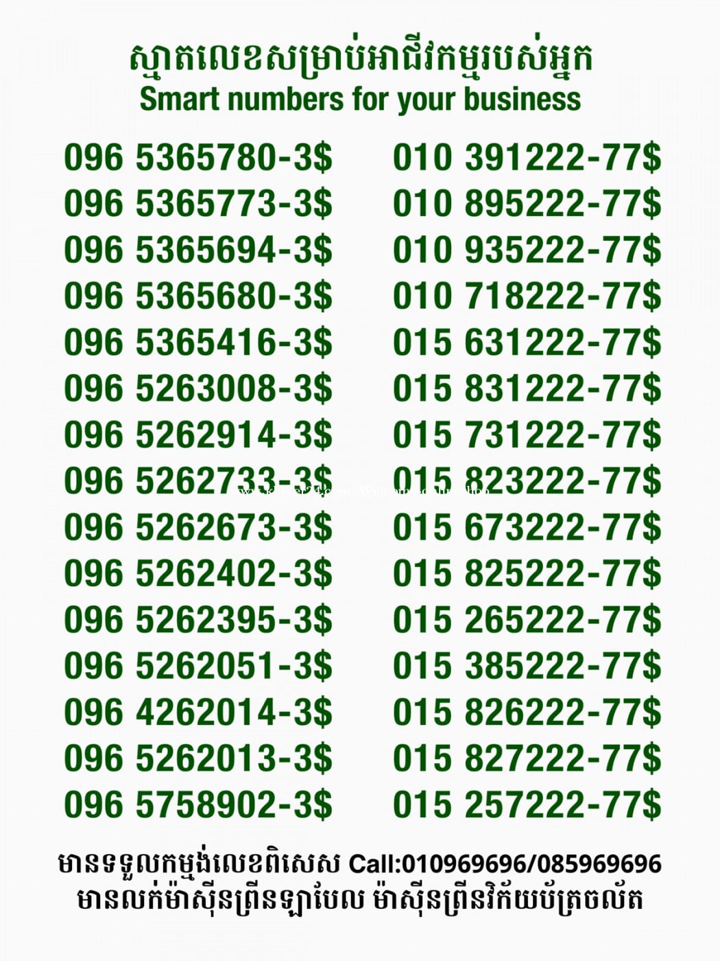 មានលក់លេខពិសេស មានទទួលកម្មង់លេខពិសេស មានលក់ម៉ាស៊ីនព្រីនឡាបែល មានលក់ម៉ាស៊ីនព្រីនវិក័យប័ត្រ មានលក់សម្ភារៈប្រើប្រាស់ក្នុងគ្រួសារ Smart Prime II 1=30$ Smart hero 1=40$ ទូរសព្ទថ្មីក្នុងប្រអប់ លក់ធូរៗរហូតអស់ពីស្តុក អាចប្រើជាឧបករណ៍សម្រាប់ស៊ែរ wifi បាន ទំនាក់ទំនង(ខ្មែរ | English | 中文):010969696 | 085969696 Telegram: https://t.me/W9696 Telegram group: https://t.me/konkonnada អាសយដ្ឋាន:ផ្ទះលេខ២៣ ផ្លូវបេតុងលេខ១ ភូមិទួលពង្រ សង្កាត់ចោមចៅ ខណ្ឌពោធិ៍សែនជ័យ រាជធានីភ្នំពេញ ទីតាំង https://goo.gl/maps/8moqW4iTHUfJEvWQ9 ដើម្បីស្វែងរកលេខអាជីវកម្មដែលលោកអ្នកពេញចិត្ត សូមចូលទៅកាន់:https://www.khmer24.com/Welcome-onlineshop