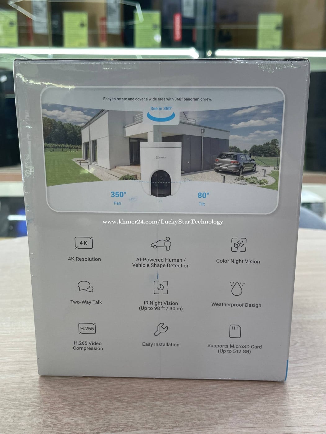 -Model: CS-H8c (Pro 5MP) -360degree Panoramic View -AI-Powered Human/Vehicle Shape Detection -Auto-Zoom Tracking -Active Defense -Two-way Talk -IR Night vision (up to 98ft/30m) -Color Night Vision -Weatherproof Design -Wi-Fi 2.4GH -H.256 Video Compression -Easy Installation -Supports Micro SD (up to 512GB)