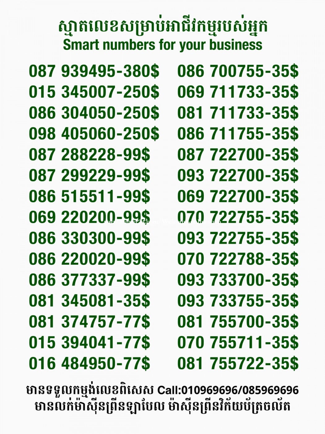 មានលក់លេខពិសេស មានទទួលកម្មង់លេខពិសេស មានលក់ម៉ាស៊ីនព្រីនឡាបែល មានលក់ម៉ាស៊ីនព្រីនវិក័យប័ត្រ មានលក់សម្ភារៈប្រើប្រាស់ក្នុងគ្រួសារ Smart Prime II 1=30$ Smart hero 1=40$ ទូរសព្ទថ្មីក្នុងប្រអប់ លក់ធូរៗរហូតអស់ពីស្តុក អាចប្រើជាឧបករណ៍សម្រាប់ស៊ែរ wifi បាន ទំនាក់ទំនង(ខ្មែរ | English | 中文):010969696 | 085969696 Telegram: https://t.me/W9696 Telegram group: https://t.me/konkonnada អាសយដ្ឋាន:ផ្ទះលេខ២៣ ផ្លូវបេតុងលេខ១ ភូមិទួលពង្រ សង្កាត់ចោមចៅ ខណ្ឌពោធិ៍សែនជ័យ រាជធានីភ្នំពេញ ទីតាំង https://goo.gl/maps/8moqW4iTHUfJEvWQ9 ដើម្បីស្វែងរកលេខអាជីវកម្មដែលលោកអ្នកពេញចិត្ត សូមចូលទៅកាន់:https://www.khmer24.com/Welcome-onlineshop