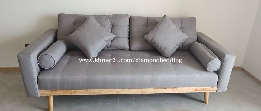 សាឡុង សាច់ក្រណាត់ ពណ៏ប្រផះស្រាល ជើងឈើ Dark wood and Light Wood