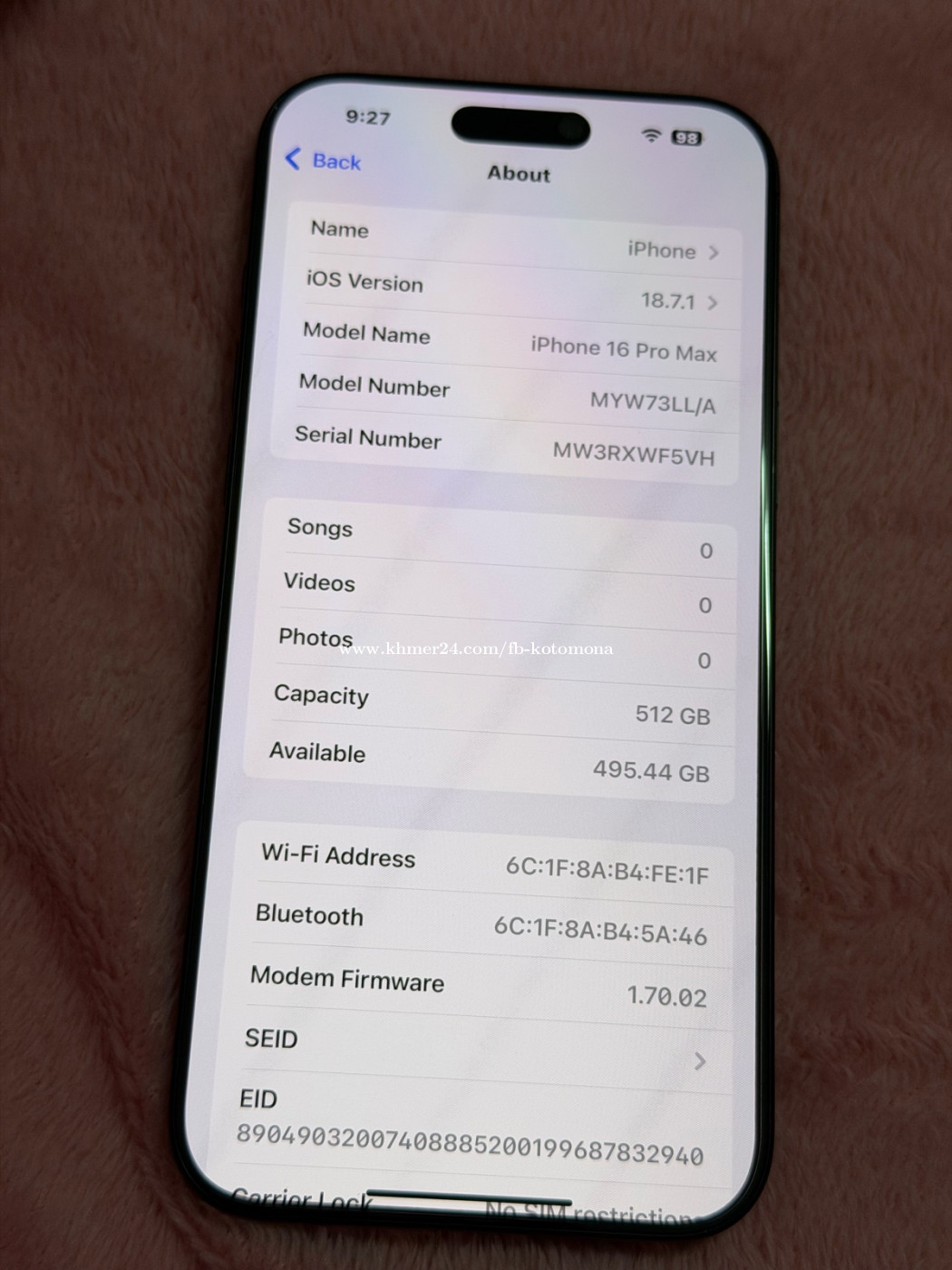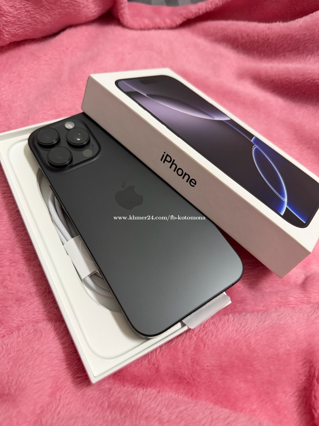 iPhone 16 Pro Max-512GB (USA 100%) (ចរចារ) - Color: Black Titanium 🖤🩶 - USA 100% - ម្ចាស់តែ 1 នាក់ - Body New 99% - Battery health 91% បញ្ជាក់: អត់វ៉ៃដូរ (No Swap)❌💰 តម្លៃចរចារបាន (Negotiate price)👌