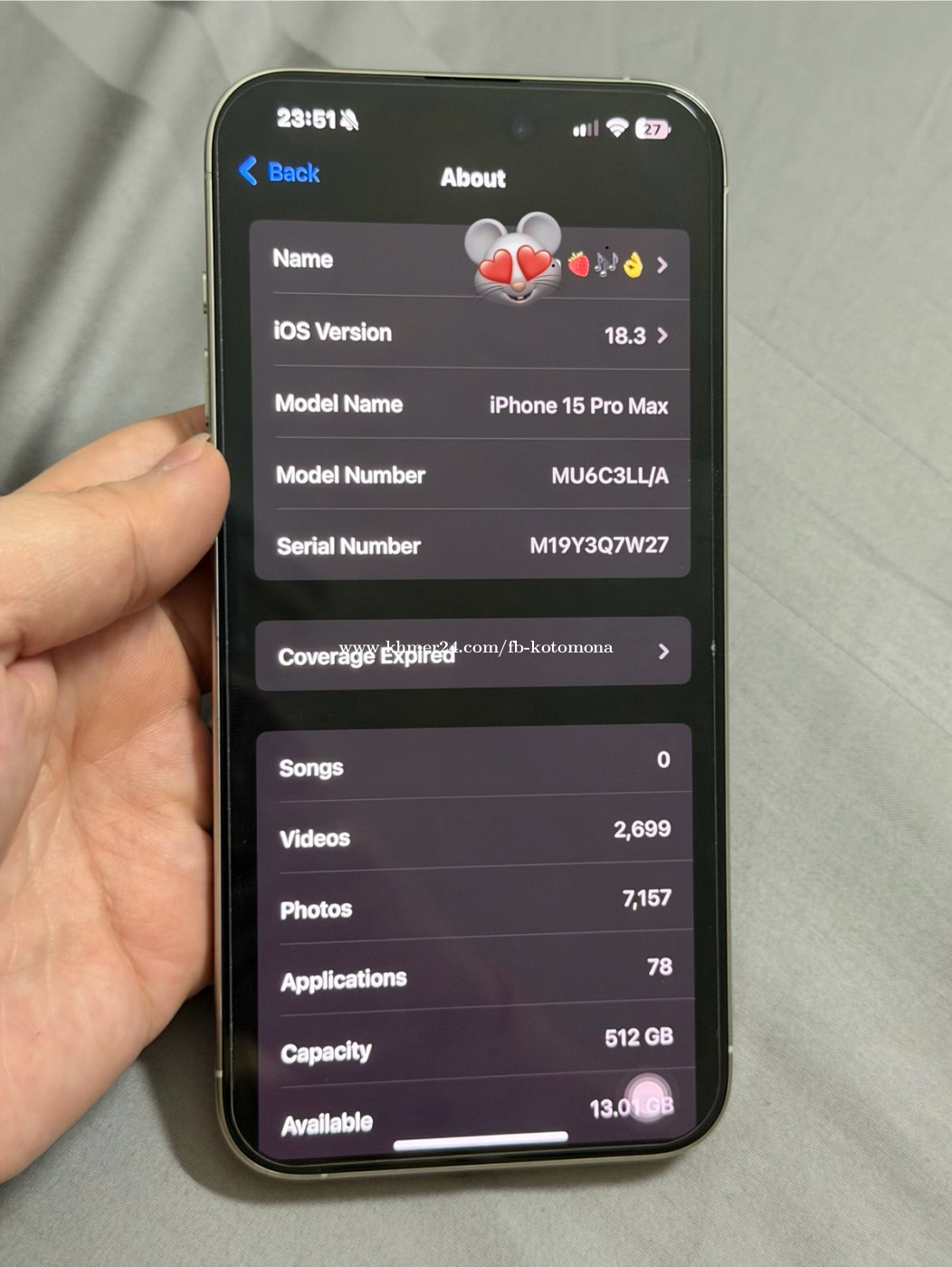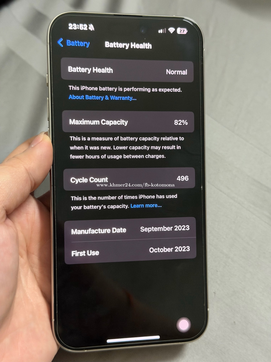 iPhone 15 Pro Max-512GB (USA 100%) (ចរចារ) - Color: Natural Titanium 🩶 - USA 100% - ម្ចាស់តែ 1 នាក់ - Body New 99% - Battery health 82% បញ្ជាក់: អត់វ៉ៃដូរ (No Swap)❌💰 តម្លៃចរចារបាន (Negotiate price) 👌