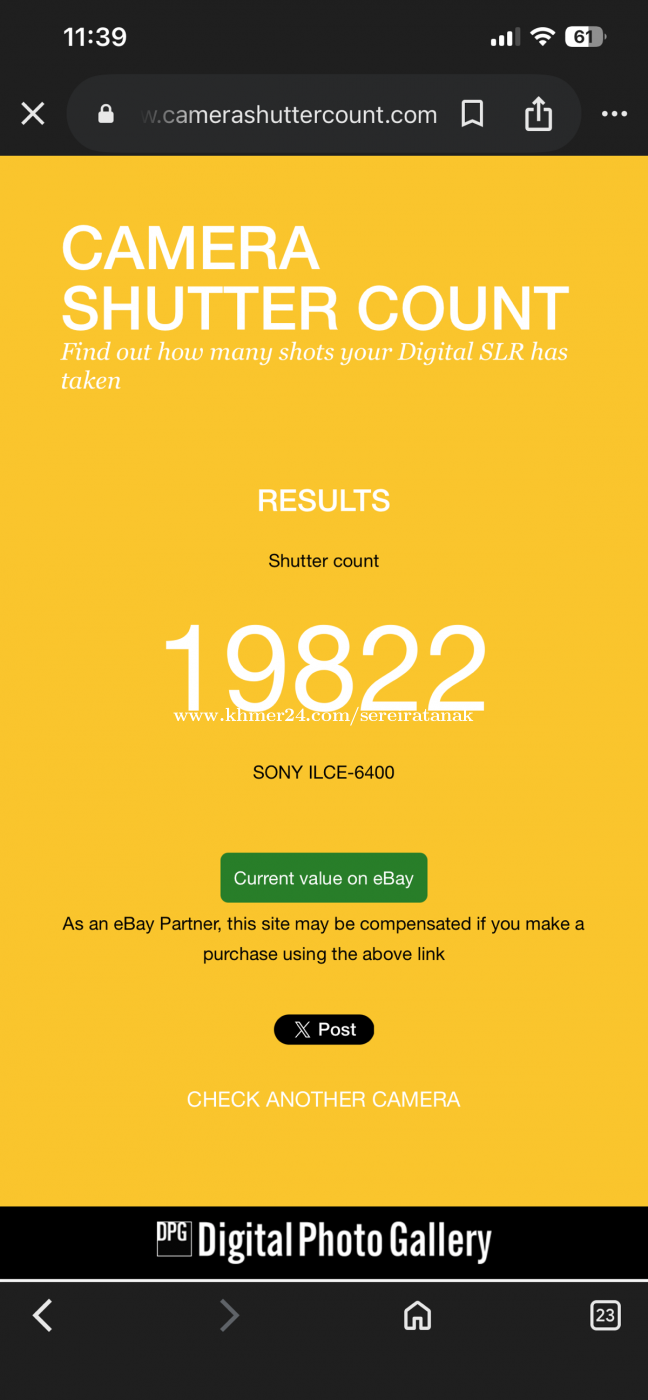 Body A6400 ស្អាត96-97% ចចារតម្លៃបាន មានឆ្នាំង ថ្ម១ កាបូប Shutter Count តិចត្រឹម19K