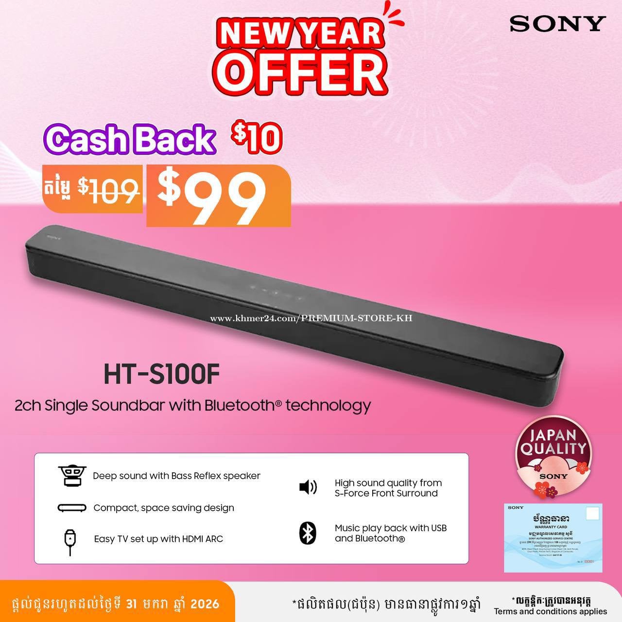 ๐น Model: SONY HT-S100F ๐น แแแแแแ: Soundbar Speaker ๐น แแแแแแแ แแ แปแแแแแแ: $99(แแแแแแแแ $109) ๐น แแแแแแแแทแแแ: แแแแแแแแทแแแแ ๐ Deep sound with Bass Reflex Speaker โ แแแแแแแแแแแแแแแถแแแแแ แแถแแฝแแแแแแแแแ Bass Reflex ๐ง High sound quality from S-Force Front Surround โ แแแแแพแแแแแทแแแแแแแแแแแแแปแแแทแ แแผแ แแแแทแแแแแปแแแแแแถแแแแแ ๐บ Easy TV setup with HDMI ARC โ แแแแถแแแแถแแฝแแแผแแแแแแแแแถแแแถแแแแแฝแแแถแ HDMI ARC ๐ต Music playback with USB and Bluetoothยฎ โ แขแถแ แ แถแแแแแแแแแถแ USB แฌ Bluetooth แแถแแแแแฝแ ๐ฆ Compact design โ แแแ แแแผแ แแแแพแแแแแแแแทแ แแแปแแแแแแถแแแแแแแแแแแถแแแ แแแถแแ ๐ Japan Quality โ แแแทแแแแแปแแแถแแแแแแแแธแแแแปแ ๐ แแถแแแแแแแแผแแแถแแแปแแแแถแแแแแแแแแแธ 31 แแปแแถ แแแแถแ 2025 ๐ชช แแถแ แแแแปแแแแแถแแถ (Warranty Card) แแธ Sony แแแแแแแถแแแ แแแแถแแแแแแแแ 017555xxxClick To Call