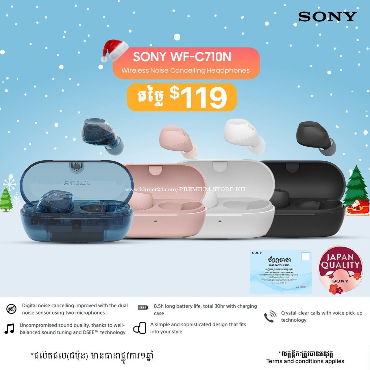 Experience premium sound and powerful noise cancellation with the Sony WF-C710N Wireless Noise Cancelling Headphones. Designed for comfort and style, these earbuds deliver clear audio, deep bass, and crystal-clear calls with advanced voice pick-up technology. Key Features: Advanced digital noise cancelling with dual noise sensor 8.5h battery per charge, up to 30h with case Balanced, high-quality sound with DSEE™ Crystal-clear calls with voice pick-up Stylish and comfortable fit ========================================================== SONY WF-C710N លក្ខណៈពិសេស: ការបំបាត់សម្លេងរំខាន Digital Noise Cancelling ដោយ Dual Sensor ថាមពលថ្ម 8.5 ម៉ោង និងសរុប 30 ម៉ោងជាមួយកេស សម្លេងគុណភាពខ្ពស់ DSEE™ ការ call ច្បាស់ជាមួយ Voice Pick-up រចនាស្អាត និងទាន់សម័យ ========================================================= Contact: 017555xxxClick To Call