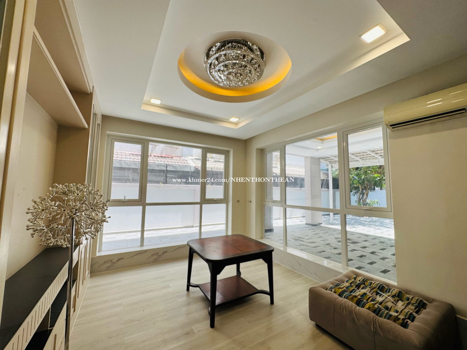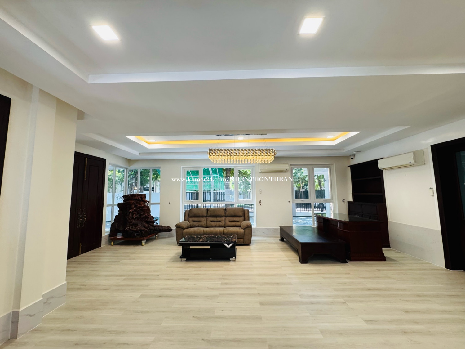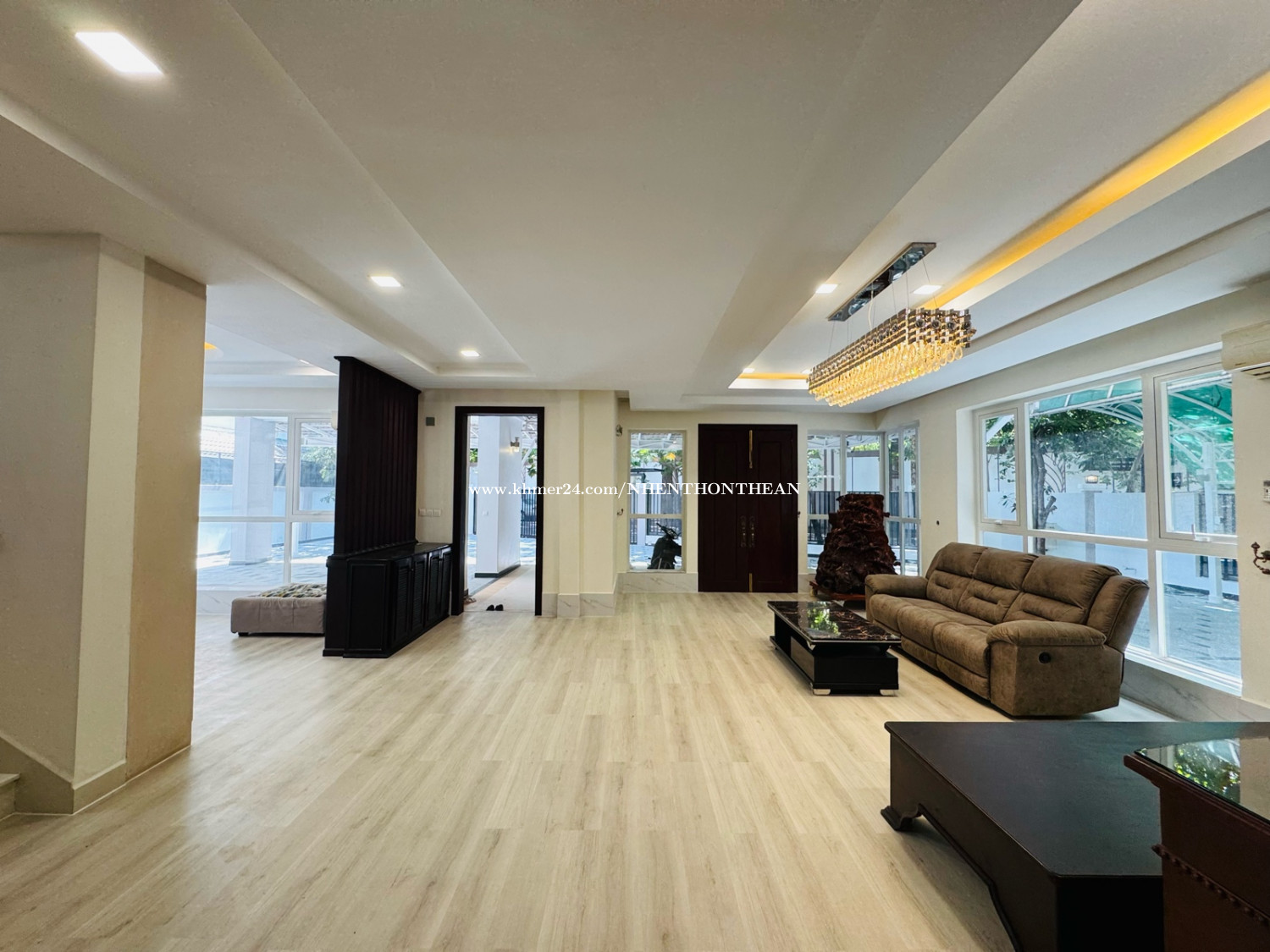 Spacious Villa 6 Bedrooms For Rent At Peng Hout Beoung Snor. Price: $6000 per month negotiable Bedroom:06 plus 2 maid room Bathroom:07 Furniture: fully furnished Parking around 5 cars It is very good for living and office safe area no flooding. Located not far from BKK1, Nagaworld, Koh Pich.