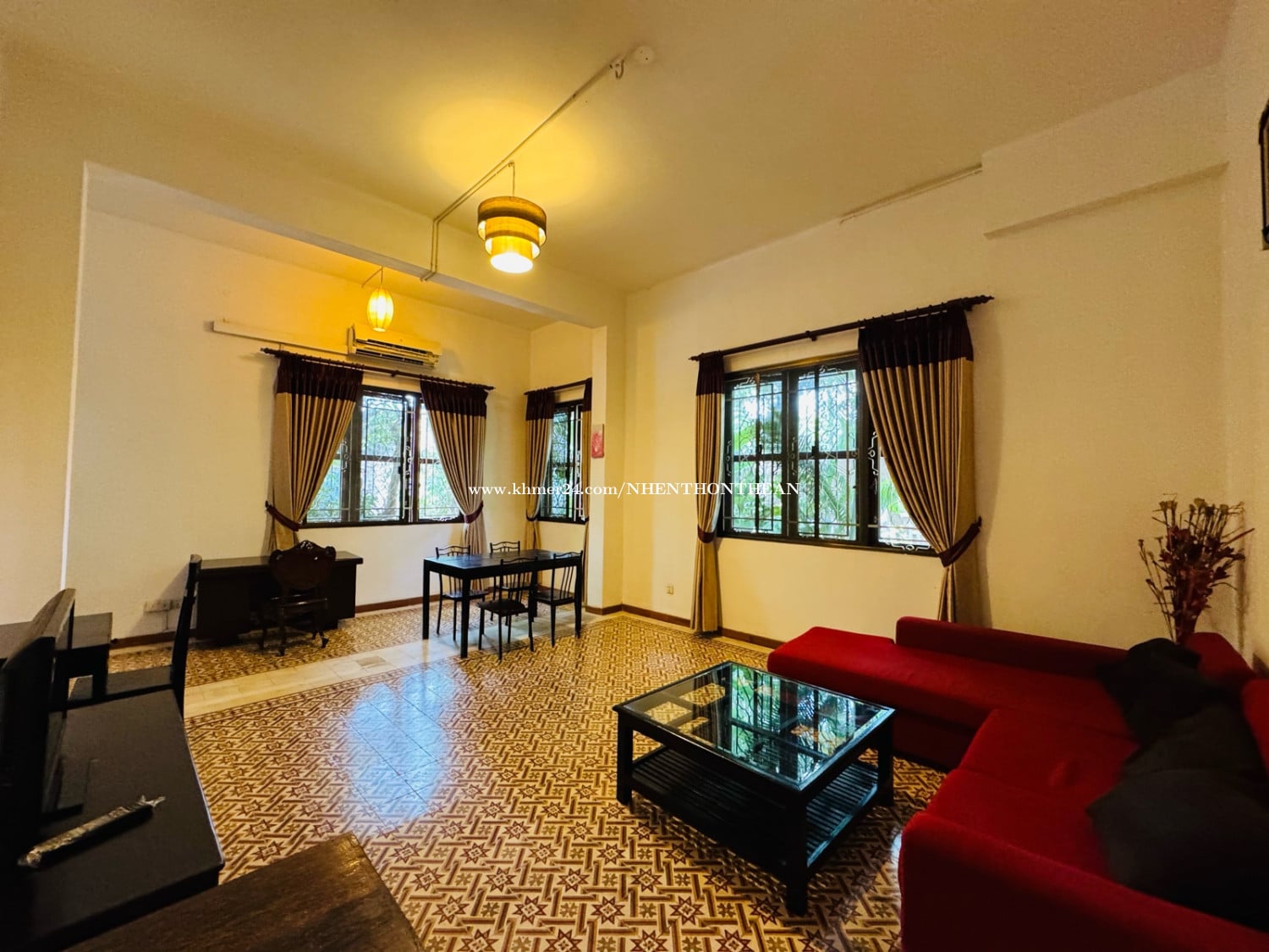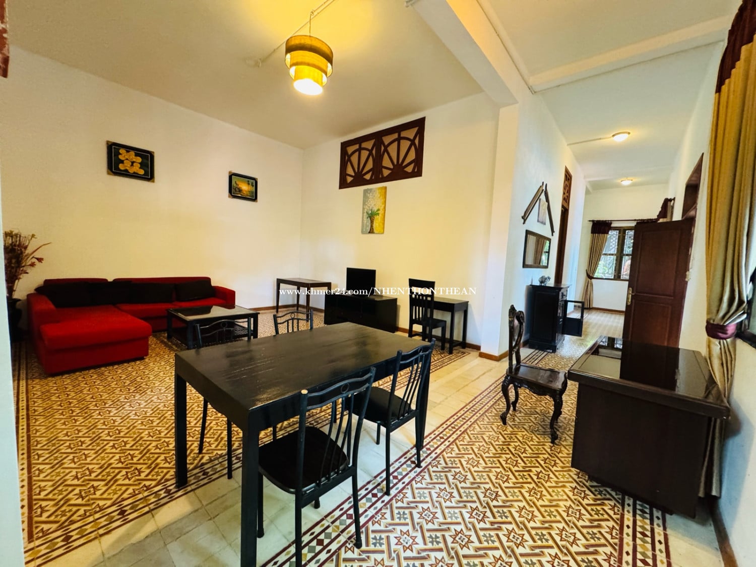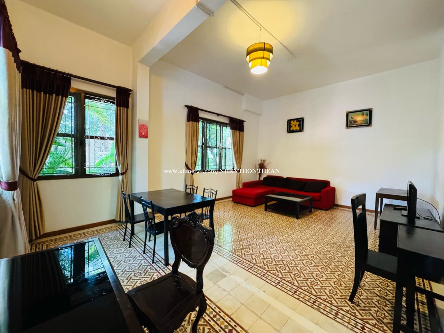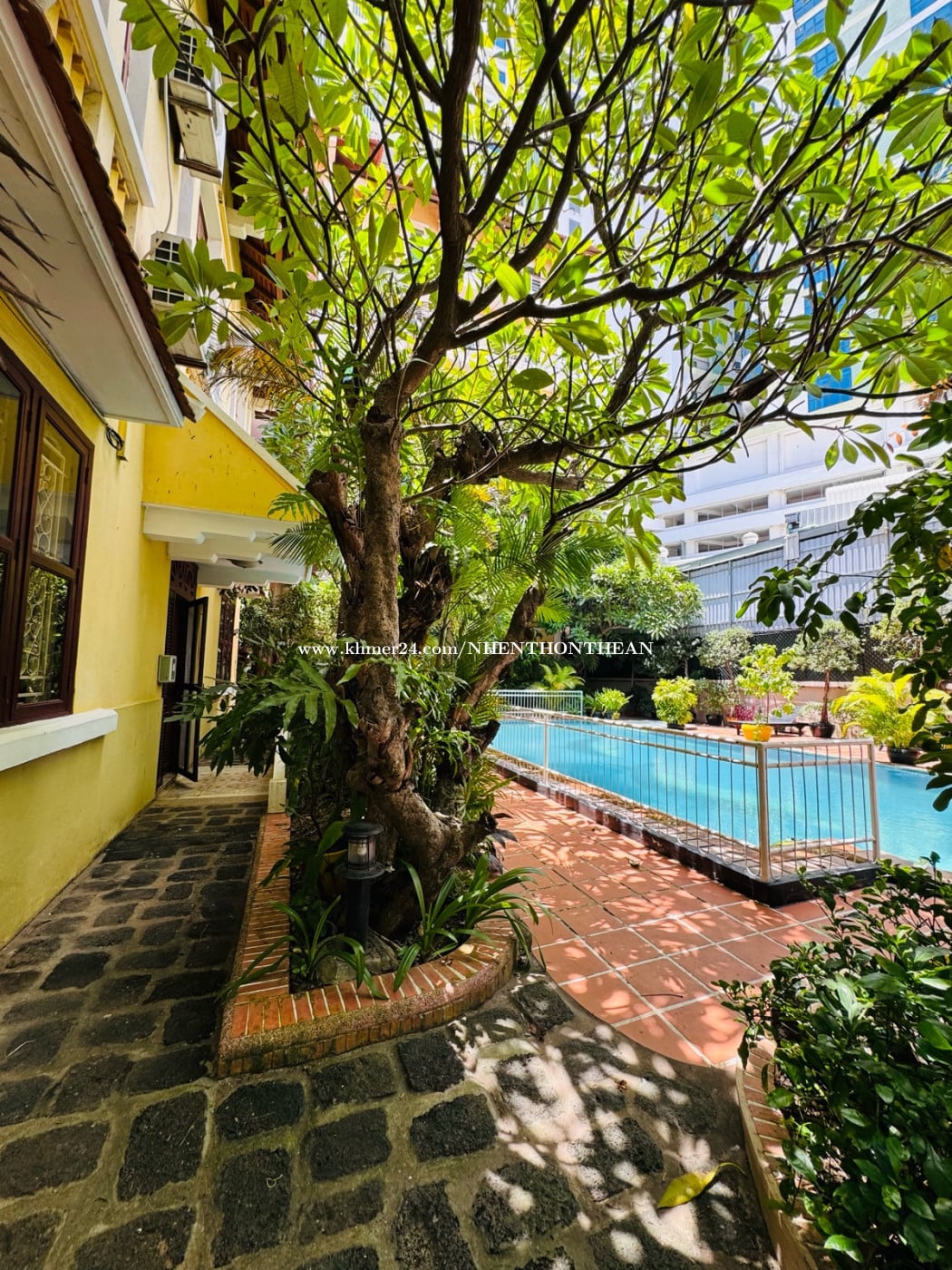 Colonial Style Ground Flooe 1 Bedroom For Rent At Wat Phnom. Price: 800$ per month Bedroom:01 Bathroom:01 Fully furnished Service included: Pool, Gym, Cleaing, WiFi, Cable TV, Water drink is free and water is free, parking.