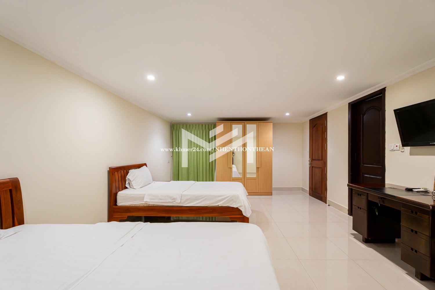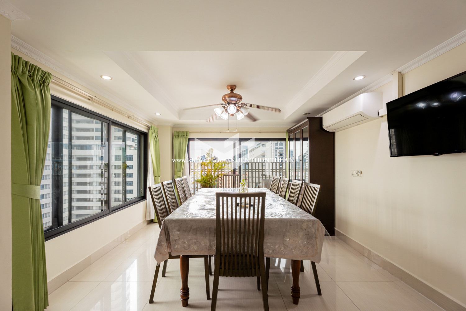 Service Apartment For Rent in bkk1 Price: $3700 per moth negotiable Size: 300m2 Bedroom:04 Bathroom:04 Furniture: fully furnished Package included - A complete set of Sofa with a coffee table - Refrigerator - A dining table with 4/6 chairs - Electric kettle - Rice cooker - Toaster - Microwave - Oven - Coffee maker - Washing machine - A complete set of kitchenware as well as cooking ware - In room make up table - Bed with mattress - Closet - Safety box - Study desk and chair - Cable TV - TV 42 Inc - Shoe rack Services: - Cleaning (5 time per week) - Change bed sheet (2 time per week) - Two lifts with Security access - Backup Generator - Civilian Camera - Free WiFi - Water utilities - 7/24 Security patrol guards - Secure car parking - Gym - Swimming pool at the roof top - On demand Laundry Services - Maintenance service Excluded Services: - Electricity: $0.25/khw - Drinking water: $1.2 per bottle (20L) - Refill cooking gas: Approx $ 17/botther (15L)