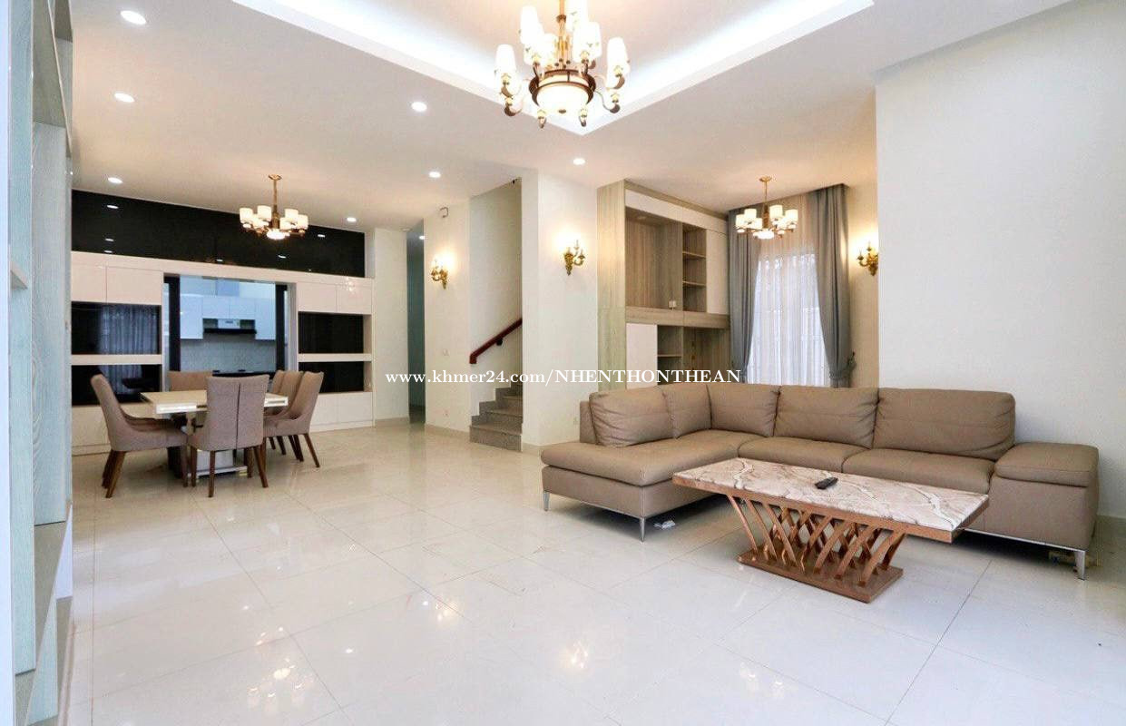 Villa For Rent in Close to Aeon mall3. Price:$4500 per month Bedroom:06 Bathroom: 08 Furniture: fully furnished Parking around 4 cars up It is very good for living and office safe area no flooding.