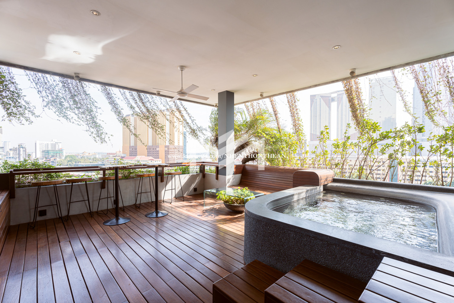 Duplex Penthouse 4 Bedrooms For Rent in Tonle Bassac Area. Price: 6000$ Per Month Size: 387m2 Bedroom: 04 Bathroom: 04 Fully furniture Private Balcony and Jacuzzi. This one-of-a-kind luxury residence is the only one of its kind in Phnom Penh, offering small and private living with just 14 exclusive units in the building. Designed for those who seek privacy, space, and top-tier services, this home features a private jacuzzi, a huge living room, and 360-degree panoramic views. Bright and airy, this residence boasts a spacious kitchen, is fully furnished, and provides full services, including drinking water. Located in a prime area within walking distance to Aeon Mall, BKK1, Bassac Lane, and the Independence Monument, this is the ultimate combination of luxury, convenience, and exclusivity. Tel: 010289xxxClick To Call / 077780xxxClick To Call.