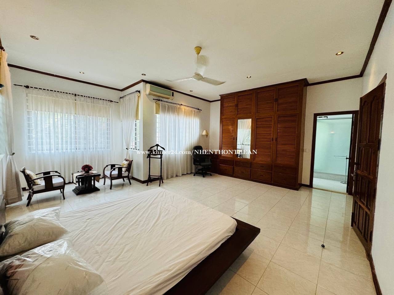 Villa For Rent in Toul Kork With Swimming Pool Price: $3000 per month Bedroom:06 Bathroom:07 Furniture: fully furnished Have swimming pool. Parking around 5 cars up It is very good for living and office safe area no flooding. It is not far from TK avenue and 15 minutes from Aron mall2.