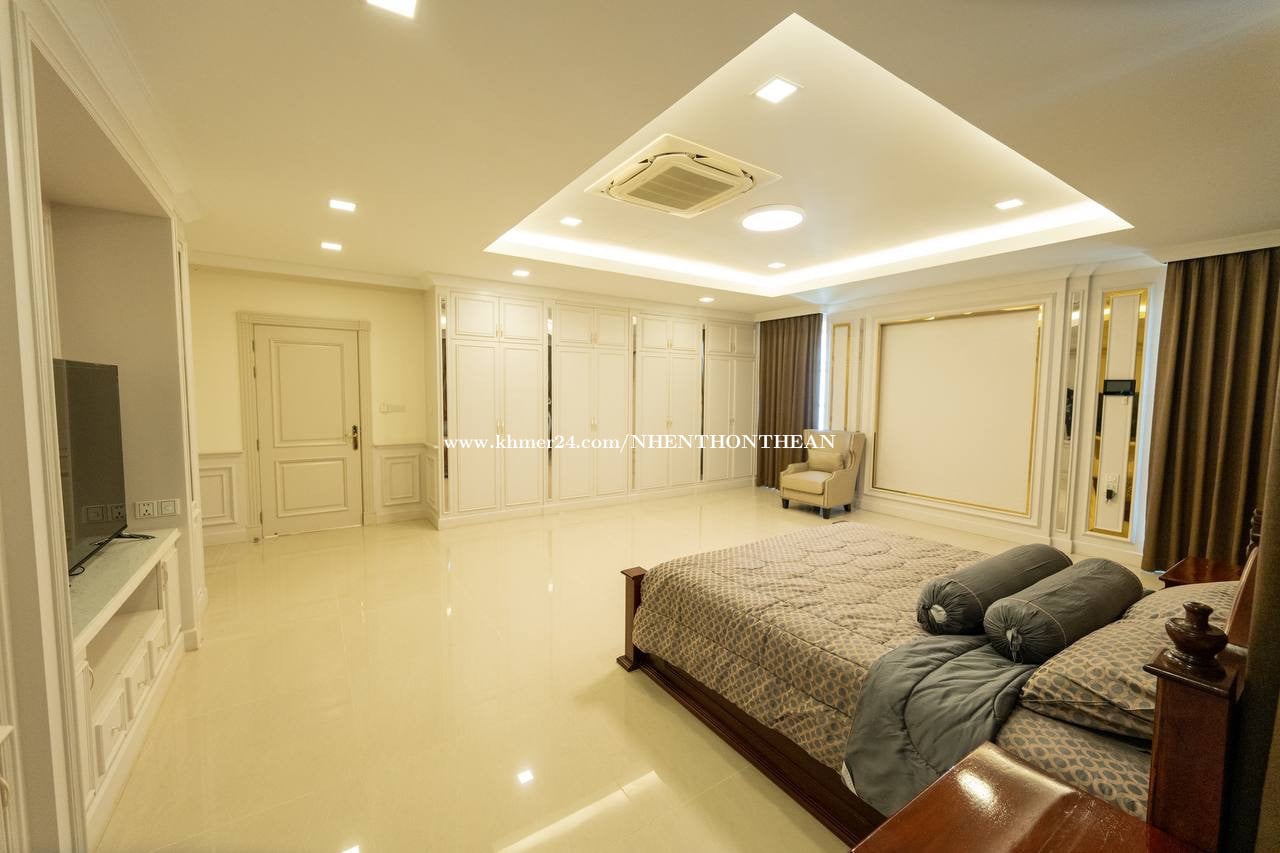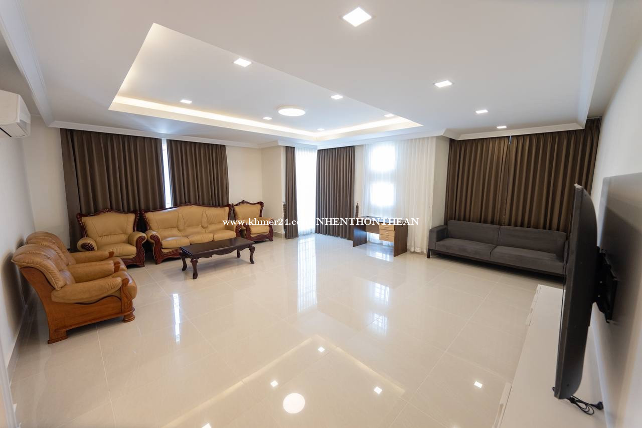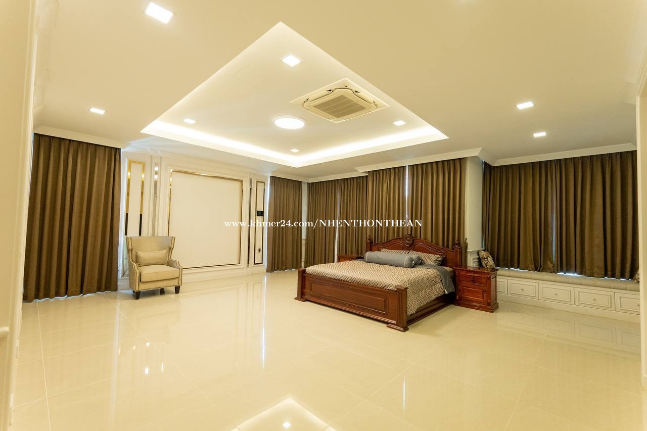 Villa For Rent at Peng Hout Close to Aeon mall3. Price: $6500 per month Bedroom:06 Bathroom:07 Furniture: Fully furnished Parking 3 cars up It is very good for living and office safe area no flooding.