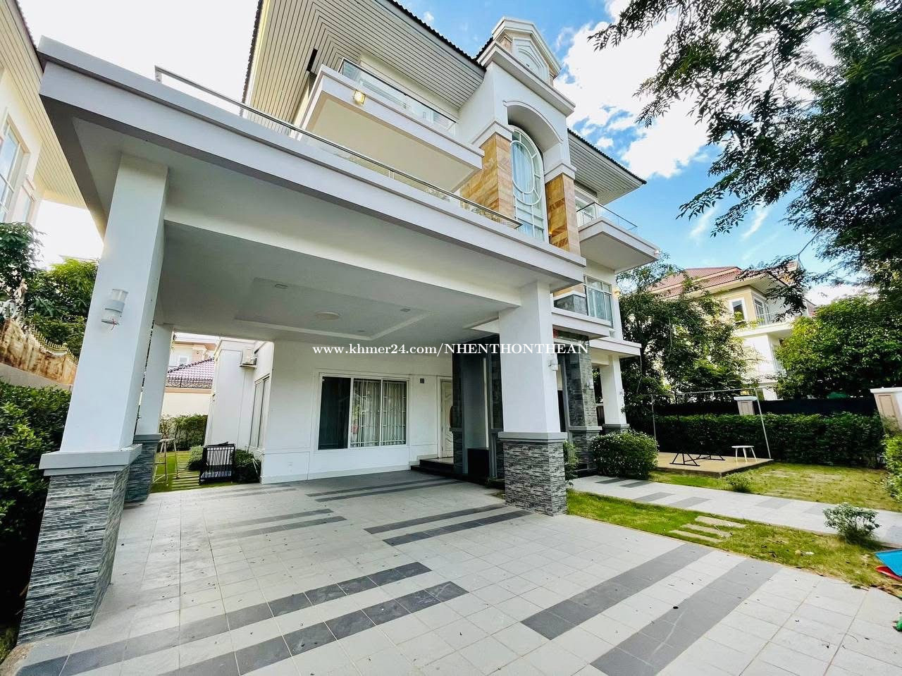 Villa 6 Bedrooms For Rent At Peng Hout Beoung Snor. Price: $6000 per month Bedroom:06 Bathroom:07 Furniture fully furnished. It is very good for living and office safe area no flooding.