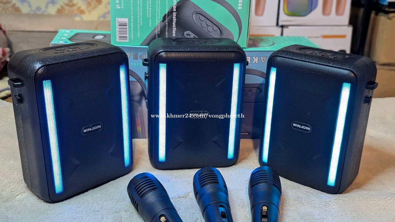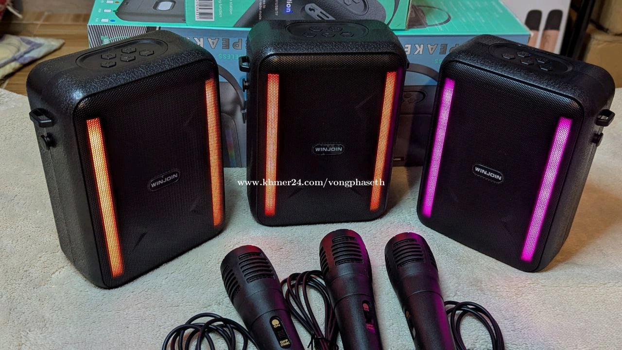 Speaker WINJOIN សំលេងធ្ងន់ល្អ ពីរោះ 💯🔥សម្រាប់ពុកម៉ែបងប្អូនតាមស្រុកស្រែចម្ការ គឺត្រូវតែម្ដង ពីព្រោះថា ខ្ញុំថែមជូនប្រភេទក្បាល microphone ខ្សែ ១ ស្ដាប់តែចម្រៀងក៏ពិរោះ យកមកច្រៀងក៏អេម👍🔥