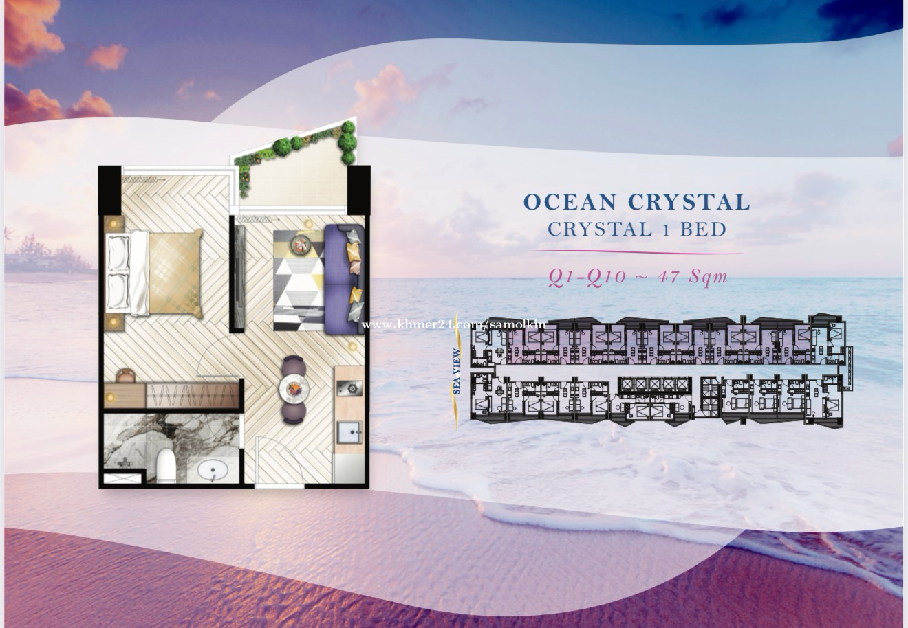 ๐ฆ Unit 1 Bedroom- Ocean Crystal Sihanoukville - Type: 6Q7 - Floor : 6 - Size : 47 m2 -๐ฐ Original Price : 53,000$ -๐ฐAfter Discount: 45,000$ ๐Down payment only 10%-20% ๐Monthly 1%=450$ per month x 45 months with no interest ๐For details: 061536xxxClick To Call/ 093536xxxClick To Call( WhatsApp & Telegram) โ๏ธ Telegram: https://t.me/internalsaleteam