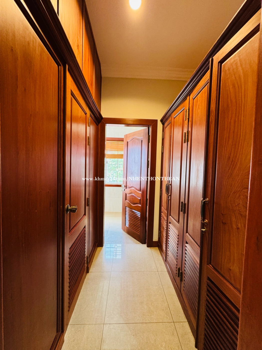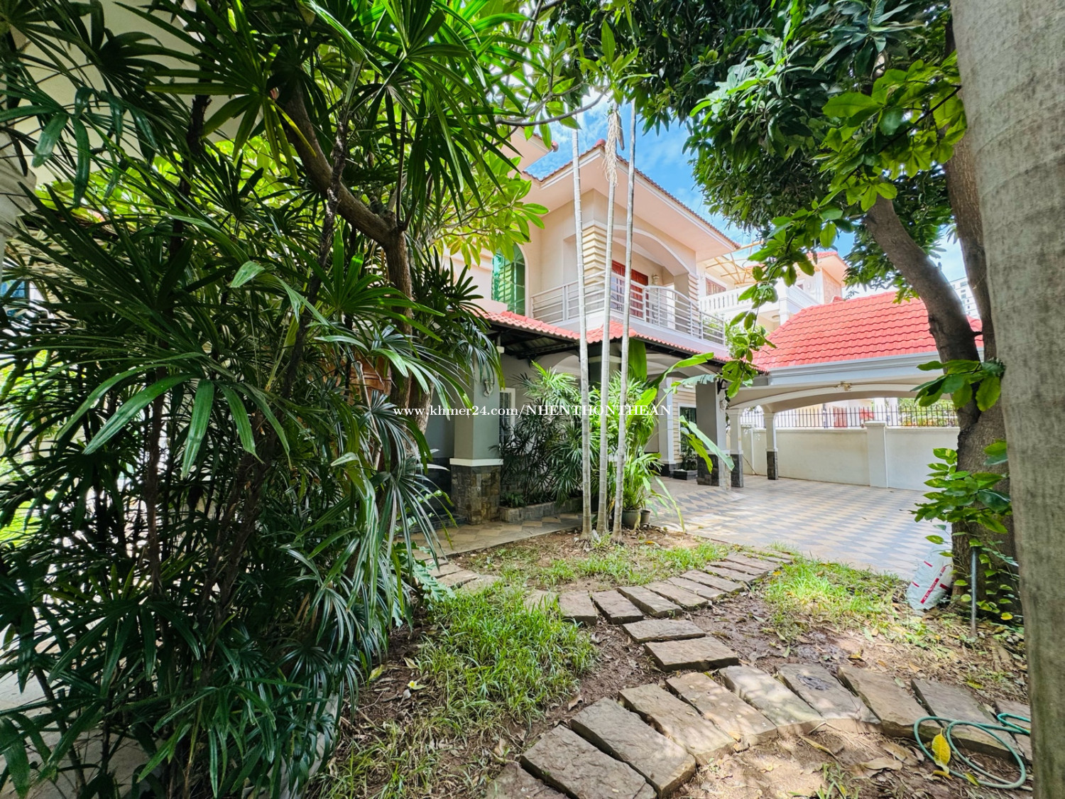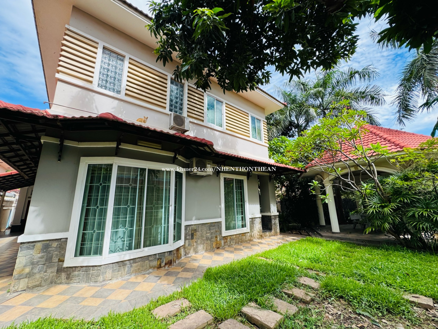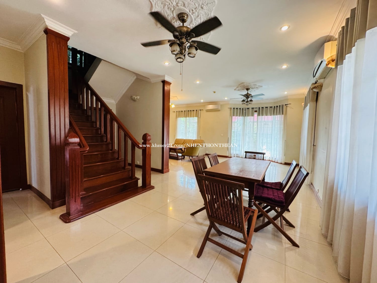Villa For Rent in Compounf At Chroy ChongVar Price: $2000 per month Bedroom:03 plus 2 maid room Bathroom:05 Furniture some Parking around 3 cars It is very good for living and office safe area no flooding.