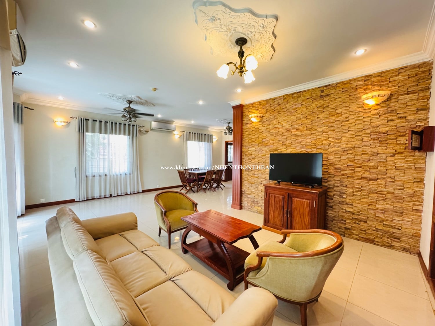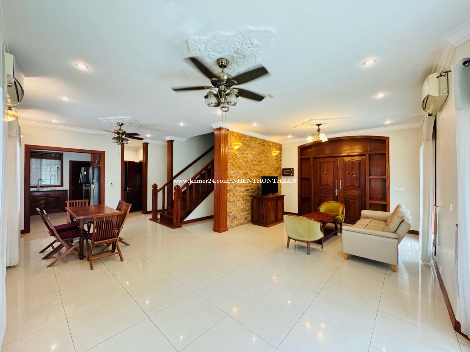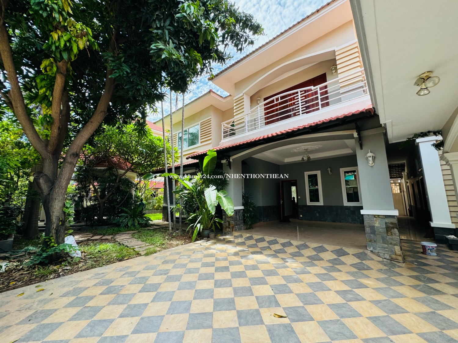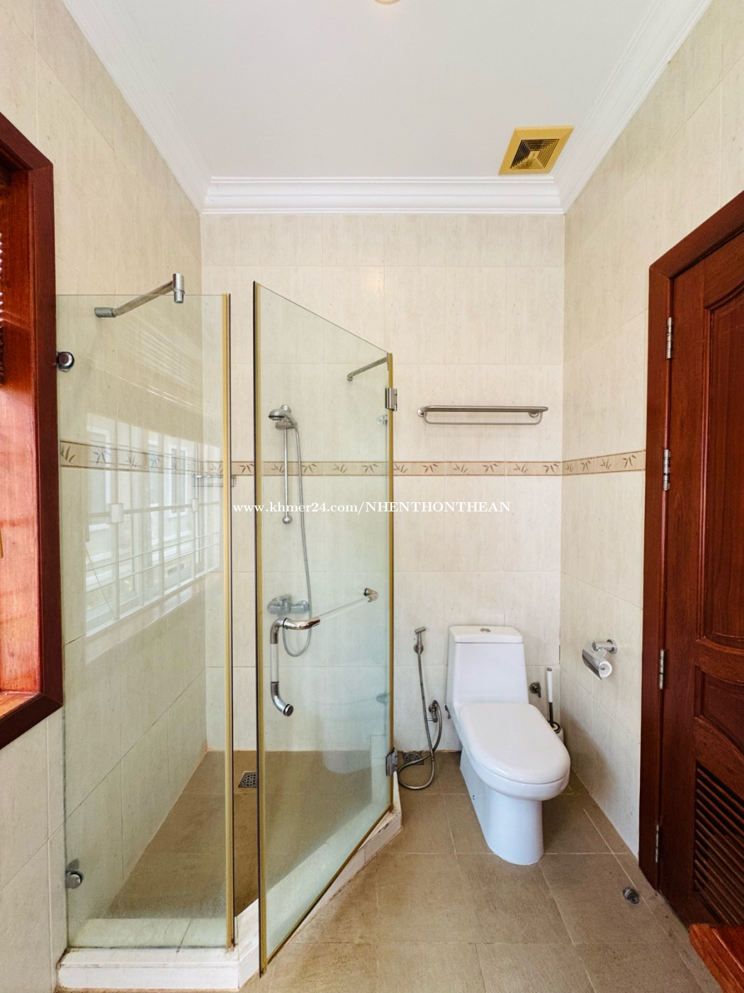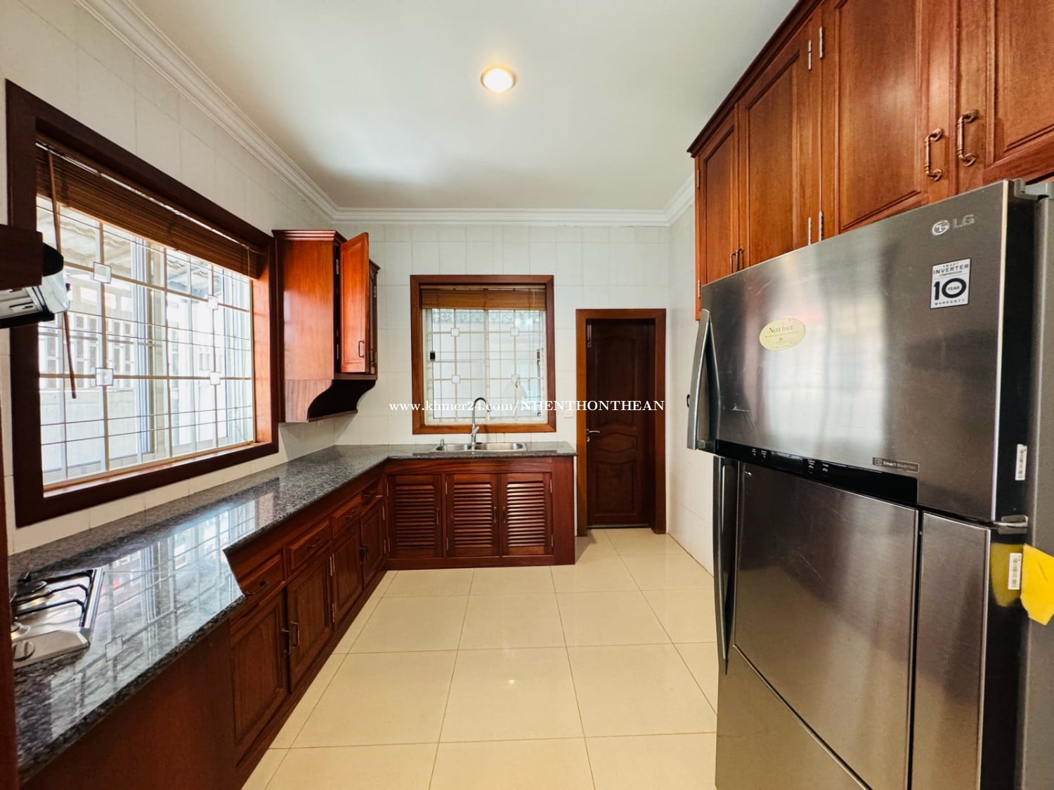 Villa For Rent in Compounf At Chroy ChongVar Price: $2000 per month Bedroom:03 plus 2 maid room Bathroom:05 Furniture some Parking around 3 cars It is very good for living and office safe area no flooding.