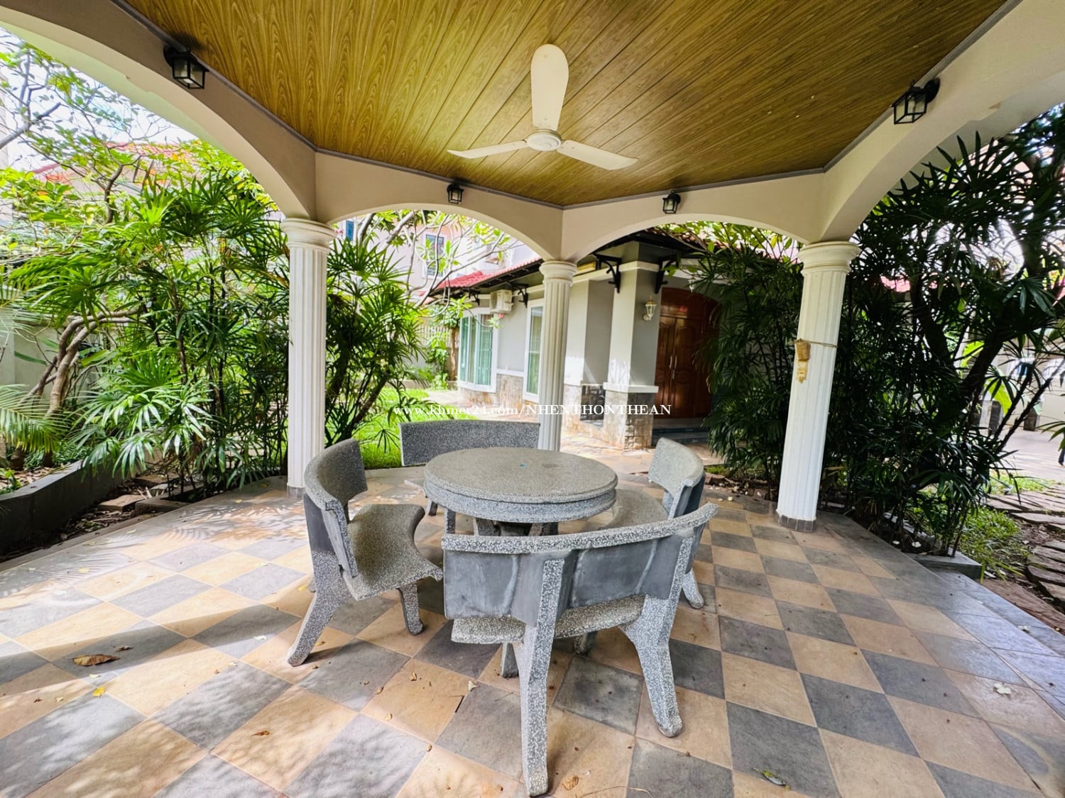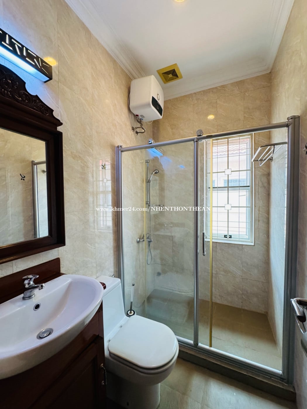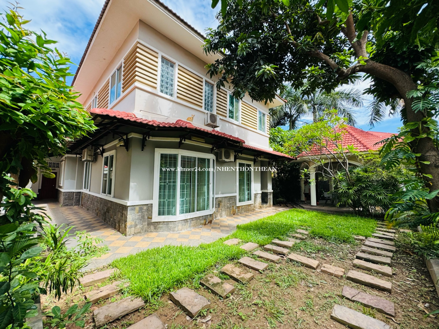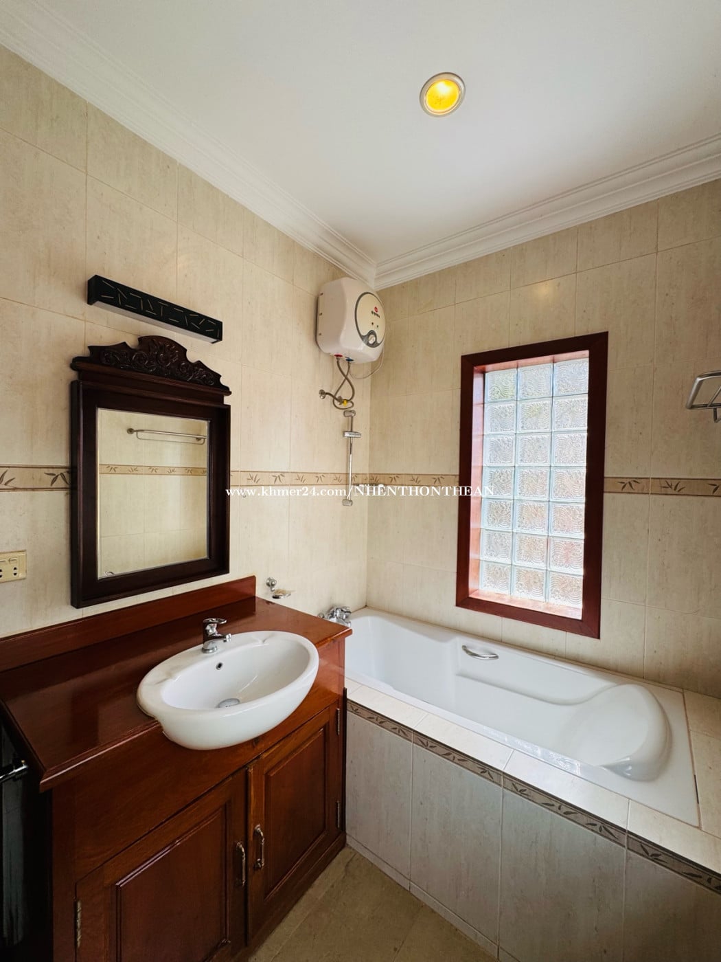 Villa For Rent in Compounf At Chroy ChongVar Price: $2000 per month Bedroom:03 plus 2 maid room Bathroom:05 Furniture some Parking around 3 cars It is very good for living and office safe area no flooding.