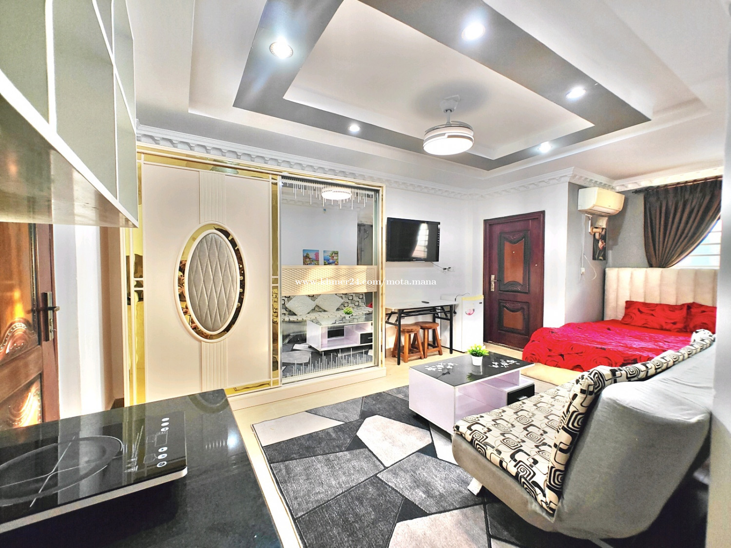 Studio room (501)5 floor/250$ 24hr Have elevator. Fully finished. 200m from street 271 Free management fee Free motor parking Free cable tv Free Sola hot water Water 5$/person Electric 0.30$/kg Trash 2$
