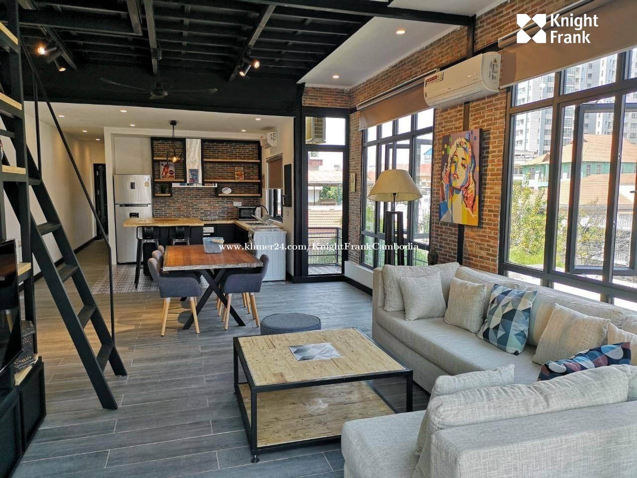 Stylish Loft Apartment for Rent – BKK1 Ref: KHRA623 $2,100/month 3 Bedrooms | 4 Bathrooms Modern duplex with high ceilings, large windows, and an open living layout. Fully furnished with a lounge, dining area, and private terrace. Prime BKK1 location near cafés and shops. Includes: Internet, government utilities, balconies, storage, private entrance, motor parking, pet-friendly Excludes: Other utilities/services Knight Frank Cambodia E: sok***************@kh.knightfrank.comClick To Sent Email T: 092866xxxClick To Call (Telegram) | 015866xxxClick To Call (WhatsApp) #knightfrankcambodia