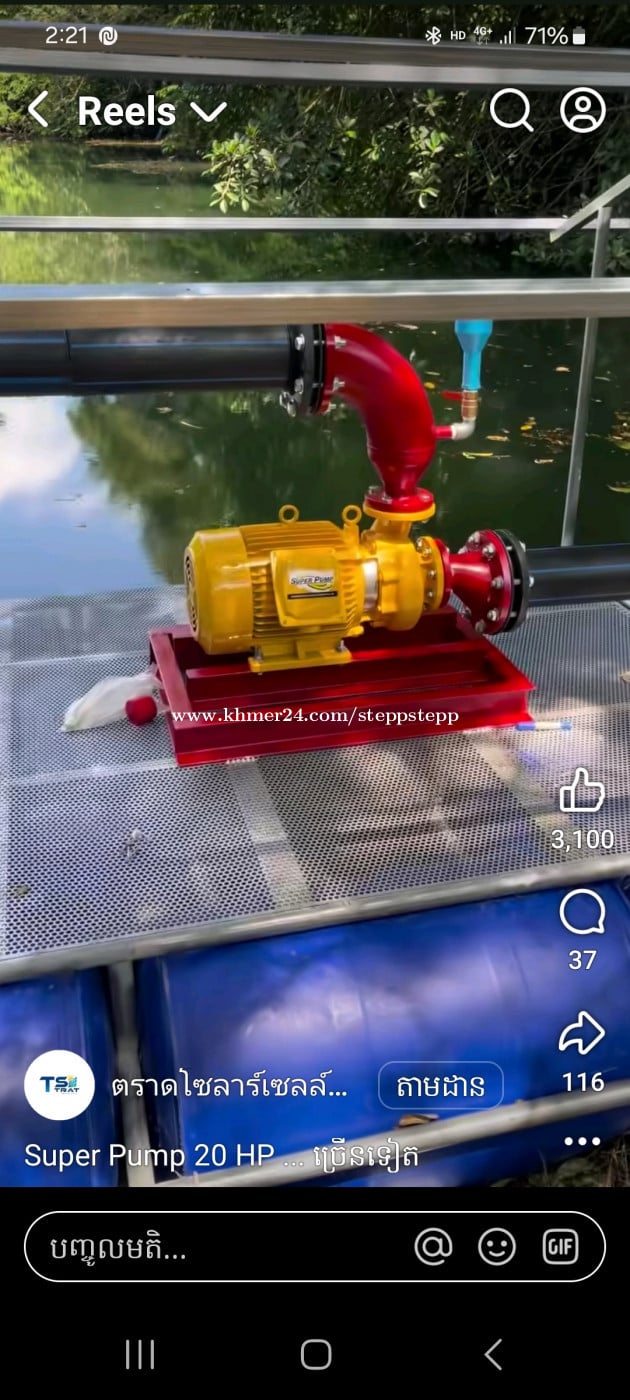 ម៉ាស៊ីនបូមទឹក super pump កម្លាំងបីសេះ មួយទឹកស្អាត ប្រើទើបតែបាន4ខែ ចង់លក់ 250 ដុល្លារចរចា ។