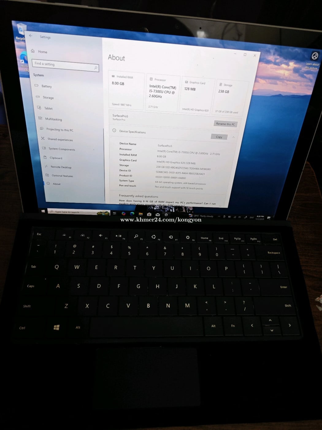 Surface Pro 5 Ram 8GB 256GB ថាច់គាំងកន្លែងខ្លះ លក់ 150$ Keyboardស៊ីន, Bluetooth Mouse ឆ្នាំងសាក កាបូប