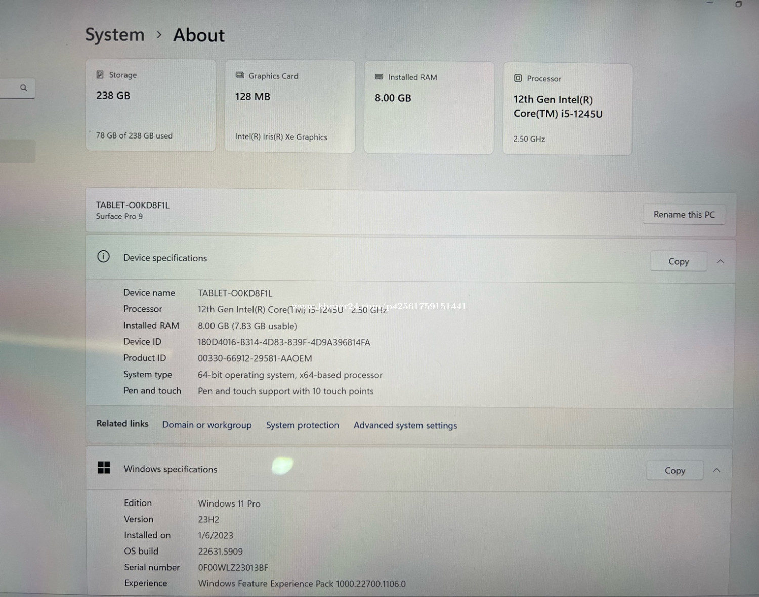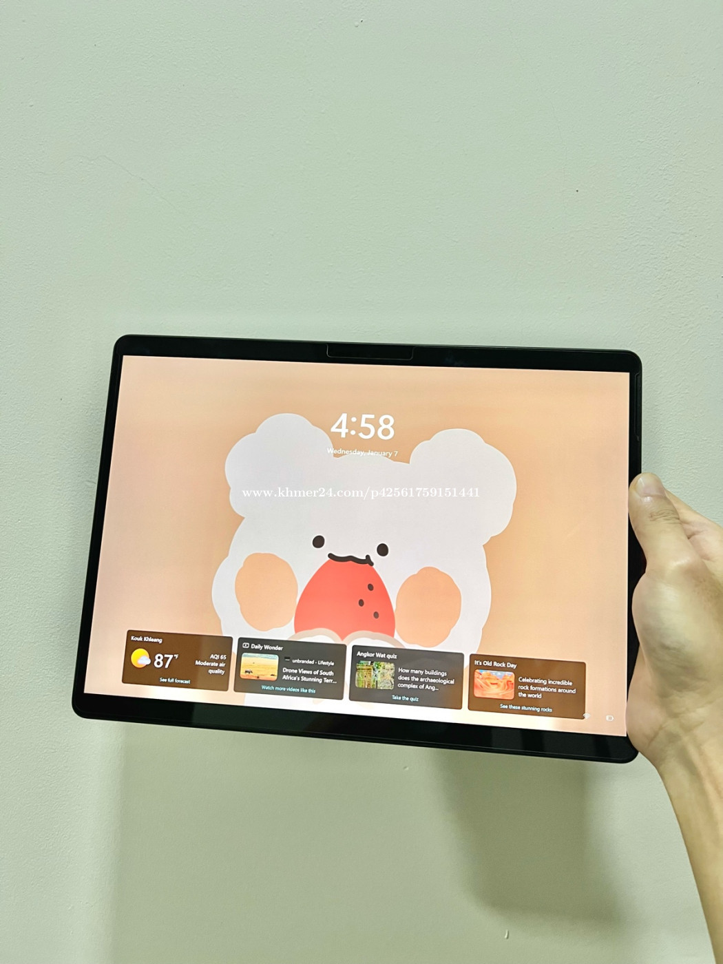 Surface Pro 9, 13” 4k 120Hz ———————— Surface Pro 9 (ដូចថ្មី, ម្ចាស់ដើម) •Processor: 12th Gen Intel •CPU : Core i5-1245U 2.5GHz •RAM : 8GB DDR5 5200MHz •SSD : 256GB (Removable and Upgradable) •Screen : 13” (2880 x 1920) Touchscreen, 120Hz •VGA : Intel Iris Xe Graphics •FaceID (ស្គេនមុខដោះសោរកុំព្យូទ័រ) •Wifi and Bluetooth fast connectivity •Front Camera : 1080p Full HD video •Back Camera : 1080p HD and 4k video •ប្រើជា Tablet ក៏បាន ជាlaptop ក៏បាន •មាន Windows •Price : $699 Note: No Keyboard