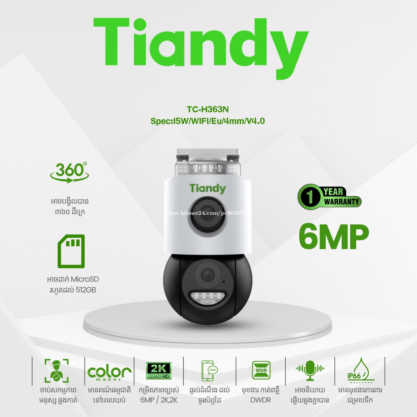 TC-H363N Spec:I5W/WIFI/Eu/4mm/V4.0 | Wifi camera 6MP អាចនិយាយឆ្លើយឆ្លងគ្នាបាន ✅ 6MP Wi-Fi 1/3"CMOS, F1.6+F1.6, 0.02Lux, 3MP+3MP. ✅light red and blue EW ✅Built-in Mic and speaker ✅Plastic Housing ✅WiFi ✅European standard power adapter supply សូមទំនាក់ទំនងមកកាន់ប្រអប់សារ ឬលេខទូរស័ព្ទ ☎️ 099555xxxClick To Call ☎️ 098555xxxClick To Call 📲 https://t.me/SL718