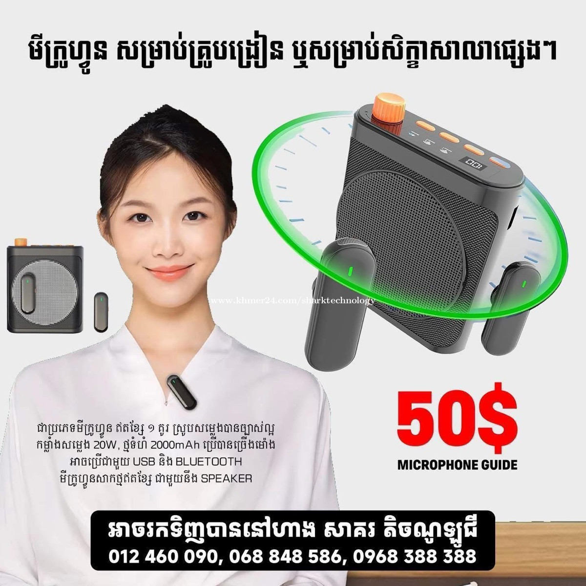 មានលក់ មីក្រូហ្ទូន និង Speaker សំរាប់គ្រូបង្រៀន ១ឈុត មាន Speaker មួយ និងមីក្រូហ្ទូន ២ សម្លេងស្រូបល្អ លក់ជូនតម្លៃពិសេស ត្រឹមតែ 50$ តែប៉ុណ្ណោះ អាចរកទិញបាននៅហាង SAKOR TECHNOLOGY TEL: 012460xxxClick To Call, 068848xxxClick To Call, 0968388xxxClick To Call
