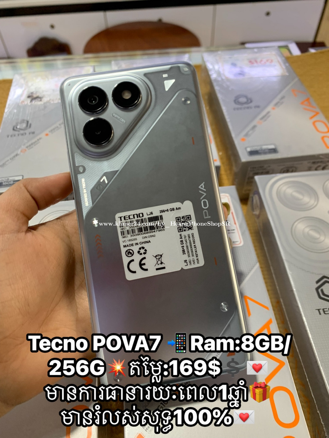Tecno POVA7 📲Ram:8GB/256G💥តម្លៃ:169$💲💌 មានការធានារយៈពេល1ឆ្នាំ🎁 មានរំលស់សុទ្ធ100%💌