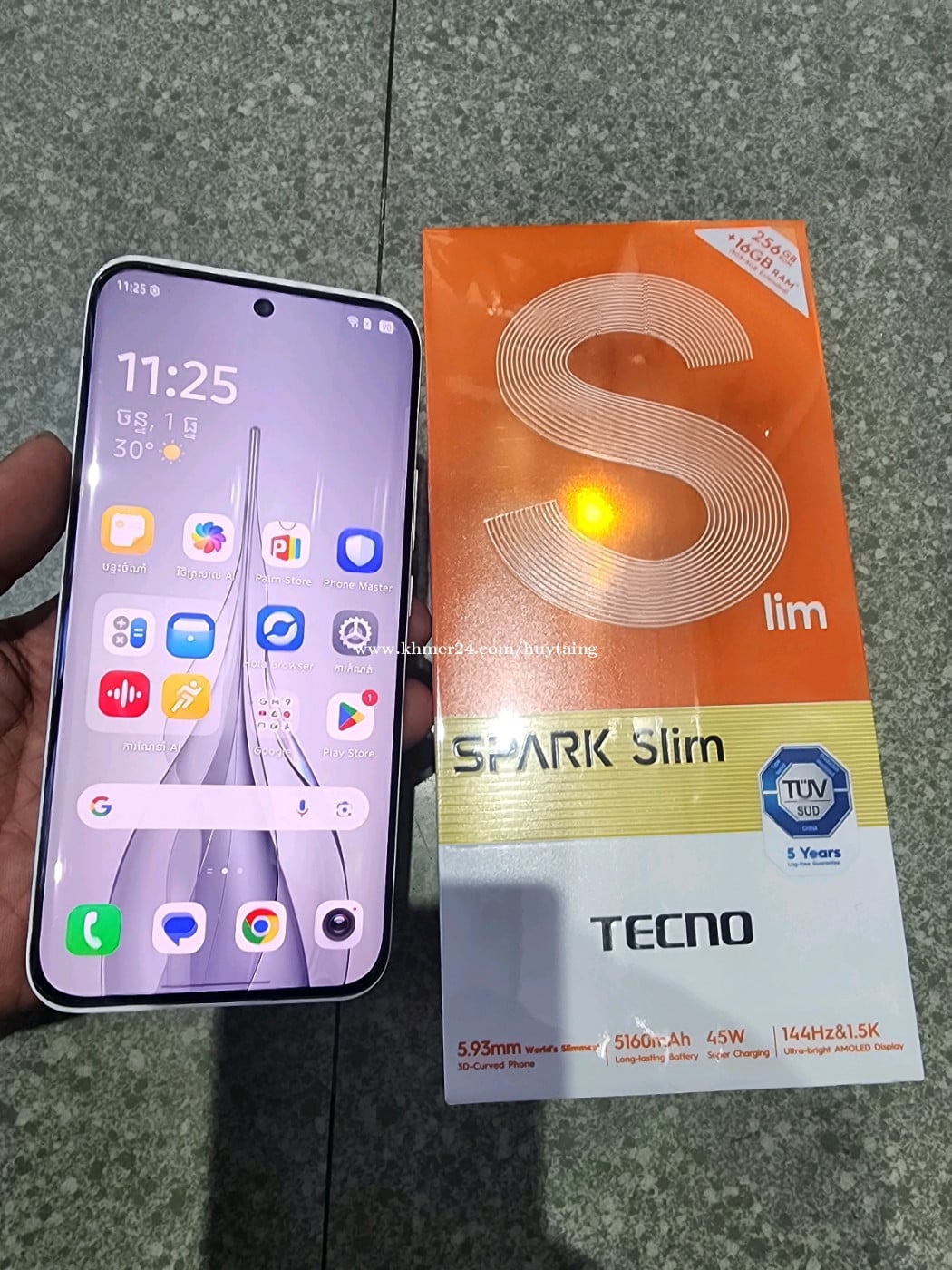 TECNO SPARK Slim មួយទឹកស្អាត 99% Ram8G/256G មានគ្រឿងគ្រប់និងប្រអប់ ហើយនៅធានាពីរក្រុមហ៊ុនទៀត។