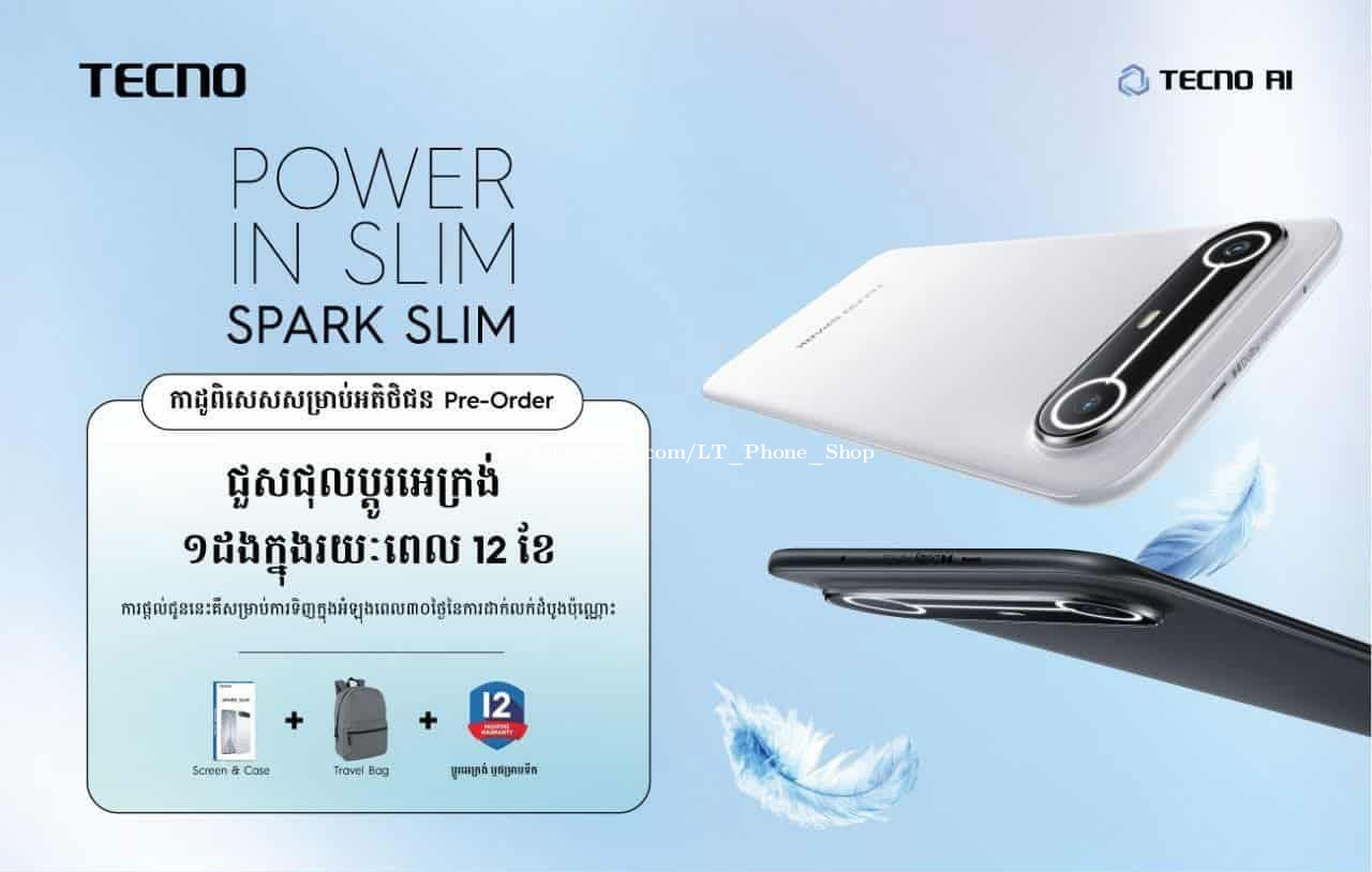 🥰 ពិតជា Slim ដូចឈ្មោះមែន! Tecno Spark Slim កម្រាស់ 5.93mm ប៉ុន្តែថ្មដល់ទៅ 5160mAh ឯណោះ 🥰 ❤️ តំលៃពេញ 249$ បញ្ចុះតំលៃនៅសល់ត្រឹម 224$ តែប៉ុណ្ណោះ ❤️ 🥰 កាដូរថែម សំបក, ស្រ្គីន, និងកាតាប 🥰 👉 Tecno Spark Slim កម្រាស់ ស្តើង មែនទែន 5.93mm 👉 ស្តើង ហើយ តាន់ទៀតបាទ 👉 ថាមពលថ្ម ធំ រហូតដល់ 5160mAh 👉 ល្បឿនសាក 45W 👉 អេក្រង់ 6.78អុីង Refresh rate 144Hz និង 1.5K 👉 ការពារទឹកកំរិត IP 64 👉 Ram 16GB, Memory 256GB 🏡 ហាងលក់ទូរស័ព្ទដៃទំនើប អិលធី 📲 ទំនាក់ទំនងលេខទូរស័ព្ទ: 016711xxxClick To Call (Telegram) / 099333xxxClick To Call / 0888884xxxClick To Call 📩 Telegram: https://t.me/LTPhoneShop 📬 Facebook Page: https://www.facebook.com/share/165XEwR2ZA/?mibextid=wwXIfr 🗺️ ផ្ទះលេខ139c, ផ្លូវលេខ143 កែងផ្លូវលេខ376, សង្កាត់បឹងកេងកង3, ខណ្ឌបឹងកេងកង, រាជធានីភ្នំពេញ 📍Google map: https://maps.app.goo.gl/phENGCSAT33SaM9r7?g_st=com.google.maps.preview.copy 🛵 មានសេវាដឹកជញ្ជូនគ្រប់ខេត្តក្រុងរាជធានី