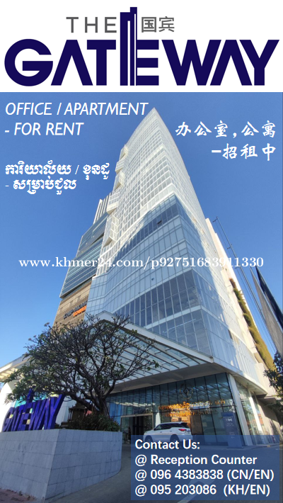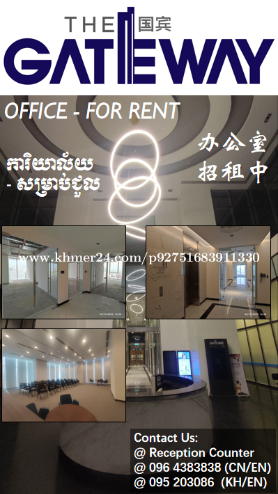 The Gateway - Office, Retail & Apartment Units Available Now! Discover your new opportunity at The Gateway, a premier mixed-use destination in the heart of Phnom Penh City. We offer beautifully designed spaces for businesses, retailers, and residents, all under one roof. Whether you're looking to grow your business, launch a new venture, or find your next home, we have the perfect space for you. ๐ Why Choose The Gateway? Unbeatable Location: Situated in a prime area along Russian Federation Boulevard, easy access to major highways, and surrounded by top amenities. Modern & Flexible Spaces: Well-designed units featuring high-quality finishes, and customizable layouts to suit your specific needs. Premier Amenities: Enjoy access to 24/7 security, on-site management, plenty of parking spaces, stunning common areas, and more. A Thriving Community: Join a dynamic ecosystem of professionals, popular retailers, and welcoming residents.Our community is home to a curated mix of leading organizations in banking, insurance, finance, legal, accounting, shipping, logistics, and NGOs. Forge valuable connections and bring your business to the next level. ๐Available Unit Types: Office Spaces: Size from 58sqm to whole floor 1361sqm. Ideal for professionals, startups, and established businesses. Retail Spaces: High-visibility storefronts with ample foot traffic. Perfect for restaurants, shops, salons, and service-oriented businesses. Apartment Homes: Modern, well-decorated Studio and 2bedroom. Best accommodation for office users of The Gateway and nearby offices, Work and stay all within walking distance. Your future at The Gateway starts here.