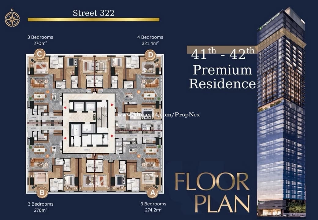 The Only Spacious, Premium 3-Bedroom Left in Wyndham Garden UC88 BKK1 - Phnom Penh This is the last remaining Premium 3BR Residence in the entire project—located on the 41st floor, one of the highest residential levels at Wyndham Garden UC88 BKK1. Designed for buyers who want real space, proper layout, and long-term value. Unit Details • Project: Wyndham Garden UC88 BKK1 • Floor: 41F • Unit Type: Type C – Premium 3BR • Size: 270 sqm (gross) / 189 sqm (net) • Layout: 3 Bedrooms | 3 Bathrooms • Kitchens: Wet + Dry kitchen with mini-bar counter • Helper’s Room + Bathroom • Guest WC • Orientation: North-West (sunset views) • Views: Panoramic city & river • Fully furnished to Wyndham international standards • Handover: Mid-2026 Price: Offered at $1,152,000 (Standard listed price: $1,280,000) Further favorable price for payoff purchase Why This Unit ✔ Highest-level Premium 3BR ✔ Much larger than typical 3BR units ✔ Proper luxury layout with service area ✔ Strong long-term value in BKK1 ✔ Branded by Wyndham Hotels & Resorts ✔ Last of its kind in the project Once sold, there will be no more Premium 3BR units in Wyndham Garden UC88 BKK1. Serious buyers only – private viewing & negotiation available