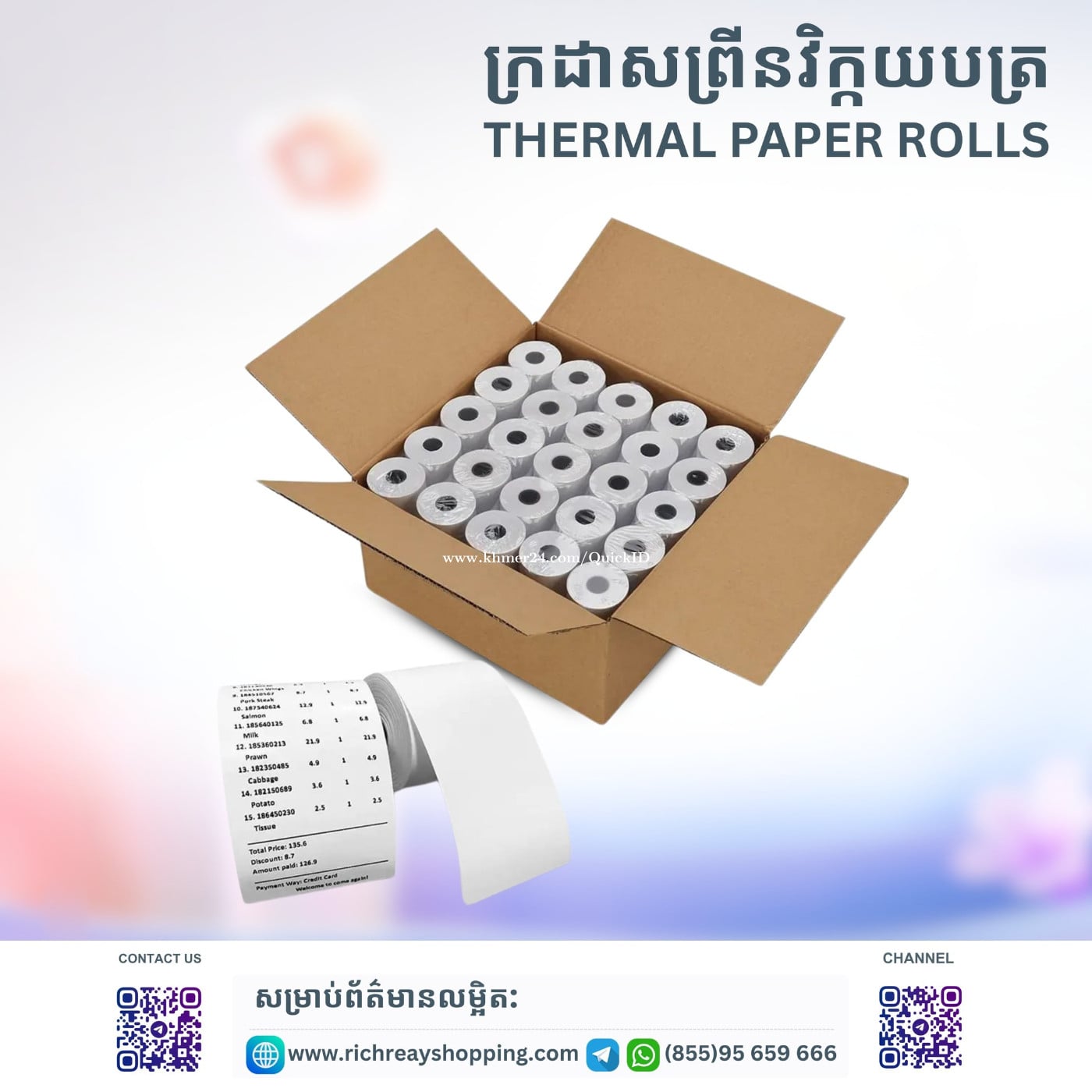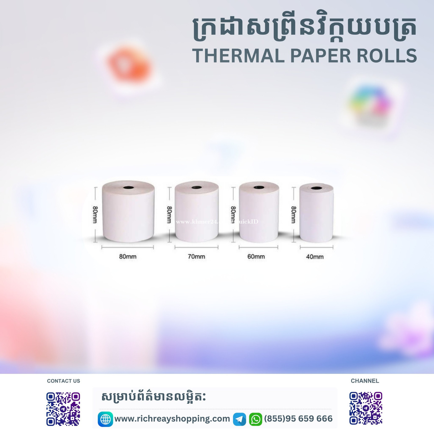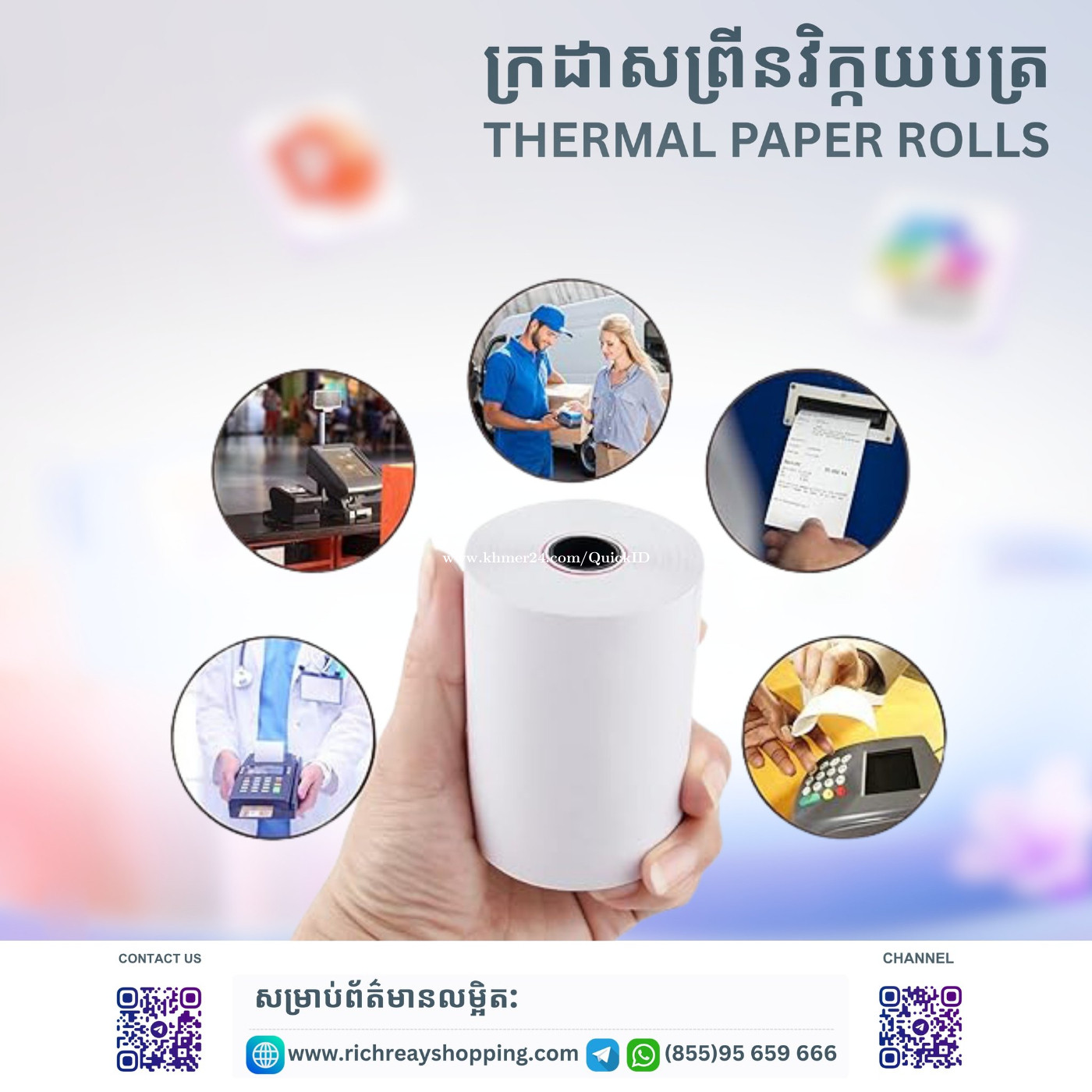 [English Below] ✅ទទួលផលិត logo នៅលើក្រដាស់វិក័យប័ត្រ✅ និងមានលក់ ក្រដាស់ព្រីន វិក័យប័ត្រ គ្រប់ខ្នាត 😘ក្រដាស់ព្រីនវិក័យប័ត្រមិនប្រើទឹកថ្មាំ (thermal Paper) 😘គុណភាពល្អ តម្លៃល្អ🆗 ____________________________ ហេតុអ្វីត្រូវបញ្ជាទិញក្រដាស Receipt Paper from Softpoint Auto-ID ✅អាចព្រីនចេញរពណ៌ខៀវ ពណ៏ខ្មៅ ….។ល។ ✅អាយុកាលយូរនៃអាចទុករូបភាព រហូតដល់ 10 ឆ្នាំ ភាពធន់ ✅ក្រដាស់កំដៅ BPA គ្មានជាតិពុល ✅ក្រដាសកំដៅស្តើង ល្អហើយ ស្វិត ____________________________ លក្ខណៈពិសេសរបស់យើង នៃក្រដាស់បង្កាន់ដែ ១-សម្ភារៈ៖ ផលិតចេញពី ឈើសុទ្ធ ១០០% 2- ទំហំ: 80mm * 80mm, 80mm * 50mm, 80mm * 30mm….។ល។ ៣-អាចប្រើនៅកន្លែង៖ ធនាគារ ភោជន្នីដ្ធាន កន្លែងចុះឈ្មោះ ប្តូរលុយ....។ល។ ៤- អាចទុកបានចាប់ពី: ២ < ៥ or 10 ឆ្នាំ។ ៥-ពណ៌ក្រដាស៖ ស 6- ភាពរលោង: 2300s 7- Ability៖ ថតចម្លងល្បឿនលឿន 100pm សមត្ថភាពឡាស៊ែរ សមត្ថភាព inkjet មុខងារទូរសារ។ ____________________________ Why order Thermal Paper from @SOFTPOINTAUTOID ✅Blue & black Image Thermal ✅Long life thermal up to 10 Years image durability ✅BPA Free-Non Toxic Thermal Paper ✅Thin Thermal Paper ____________________________ Our feature Receipt Thermal Paper roll 1-Material: 100% virgin wood pulp 2-Size: 80mm*80mm 3-Application: Cash Register PaperCash Register PaperThermal 4-Image life: 2 < 5 Years 5-Paper Color: White 6-Smoothness: 2300s 7-Ability: high speed photocopying 100pm, laser ability, inkjet ability, fax function. ⚡️Application: Cash Register Paper, Cash Register Paper, Thermal Paper ⚡️Customize size: 57x30; 57x40; 57x60; 80x60; 80x70; 80x80 Free Delivery In Phnom Penh ✍️សម្រាប់ព័ត៌មានលម្អិត: 📞 095659xxxClick To Call (Telegram/WhatsApp) 📱 Channel -Telegram https://t.me/softpointautoid 📱 Facebook -https://www.facebook.com/softpointautoid/ 📱 TikTok - https://www.tiktok.com/@softpointautoid @followers #thermalprinter#reciptprinter#paperrolls