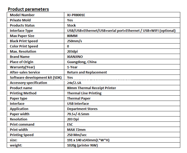 Brand XIANJINO Print speed:260mm/s, Port: USB + Ethernet, Auto Cutter, 80mm Thermal printer Warranty 1 year Can loan for testing before make a purchase. មានធានាពិតប្រាកត់គឺជាសុចរិតភាពរបស់អ្នកលក់។ Telegram: 0973648xxxClick To Call, https://t.me/The_Mr_KR_and_SR