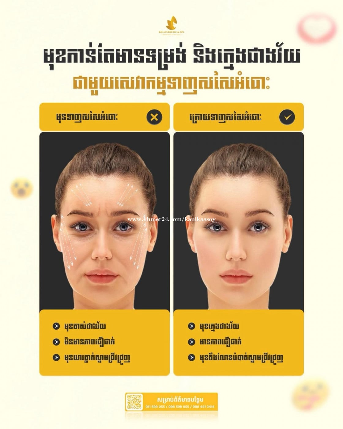 ការធ្វើសេវាកម្មដោយមិនមានការវះកាត់កំពុងពេញនិយមមាននៅក្នុង KD Aesthetic & Spa ឥឡូវនេះកំពុងមានការបញ្ចុះតម្លៃ 45% នៅចុងឆ្នាំនេះ ប្រញាប់ឡើងបងៗ ស្អាតមុនឆ្នាំថ្មីមកដល់🤩🥳 មានចំណាប់អារម្មណ៍ ឬ ចំងល់អ្វីអាចទាក់ទងមកបានណាបងៗ😘 https://kd-aesthetic.com
