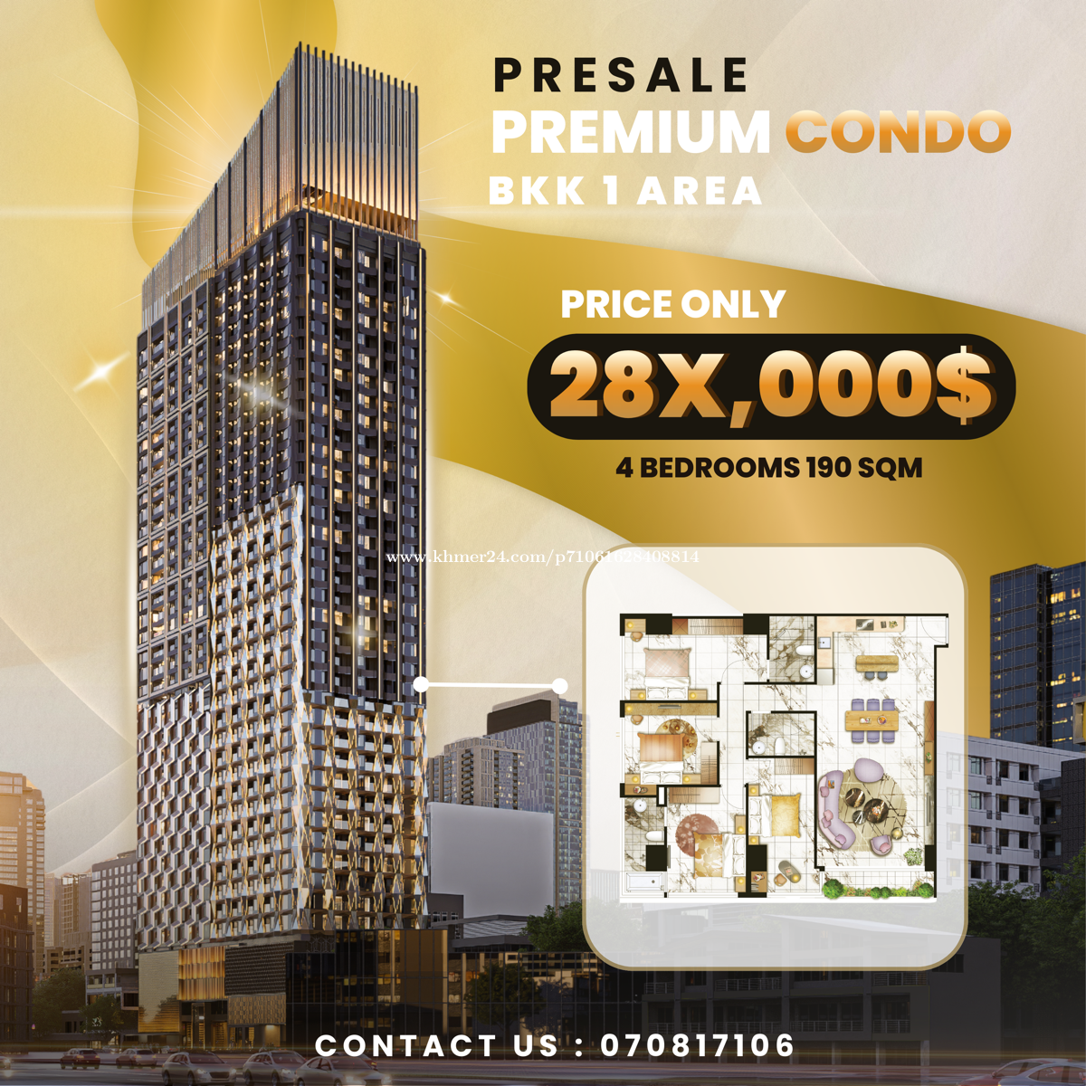 🍀Times Square 9 BKK1 👉 Start from $8x,000 with Pre-Sale Promotion. 👉🏻Type: 1 to 4 bedrooms 👉🏻 Size: 60-190sqm 👉🏻 View: River and City 👉🏻 Payment is very flexible 📱(855) 070817xxxClick To Call 📍St. 278, BKK1, Phnom Penh • Nearby Independence Monument • Nearby Royal Palace • Nearby AEON Mall Phnom Penh #penthouse #luxurypenthouse #propertyfinders #movein
