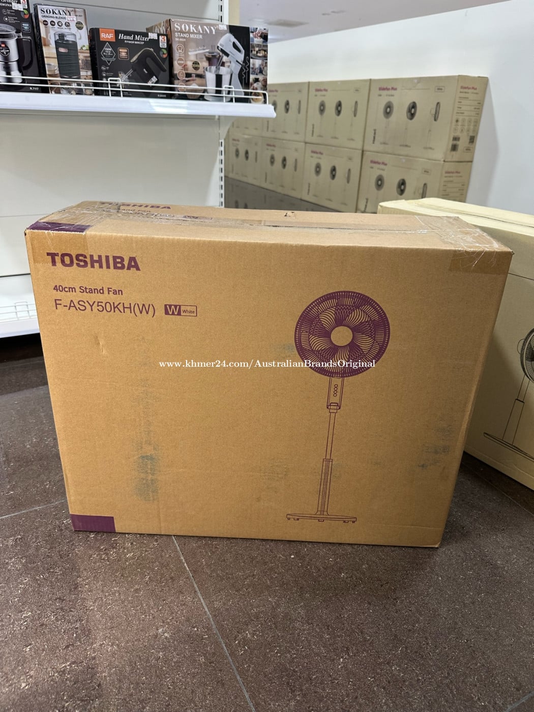 Toshiba Stand Fan 16 inches F-ASY50KHW) Voltage : 220-240V .រូបរាងស្លីមស្អាត ទាន់សម័យ .កម្លាំងខ្យល់ខ្លាំង ត្រជាក់ស្រួល .ម៉ូទ័រវិល Smooth ស្ងាត់ល្អ មិនបង្ករសំឡេងរំខាន .ស៉ីភ្លេីងតិច ជួយសន្សំសំចៃបានច្រេីន .ការប្រេីប្រាស់ រឹងមាំ ជាប់ធន់ ប្រេីបានយូរអង្វែង .ងាយស្រួលចល័ត ទុកដាក់ និងលាងសម្អាត
