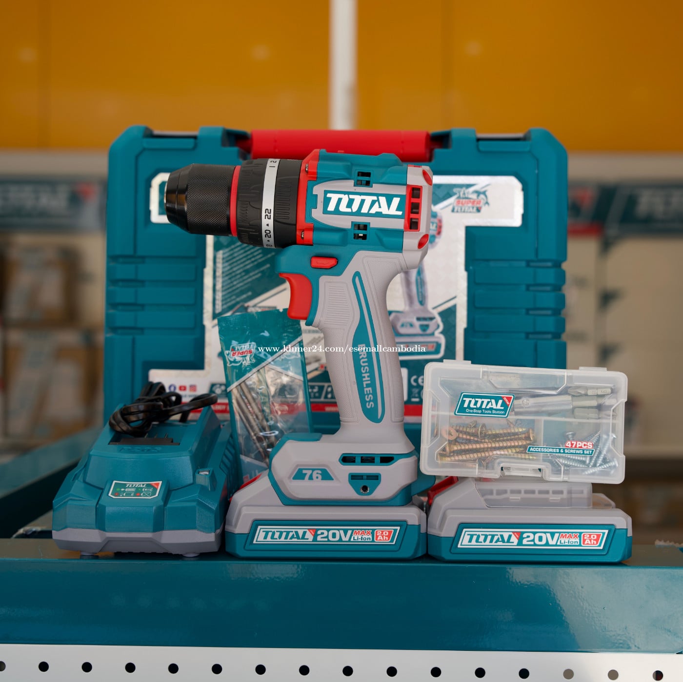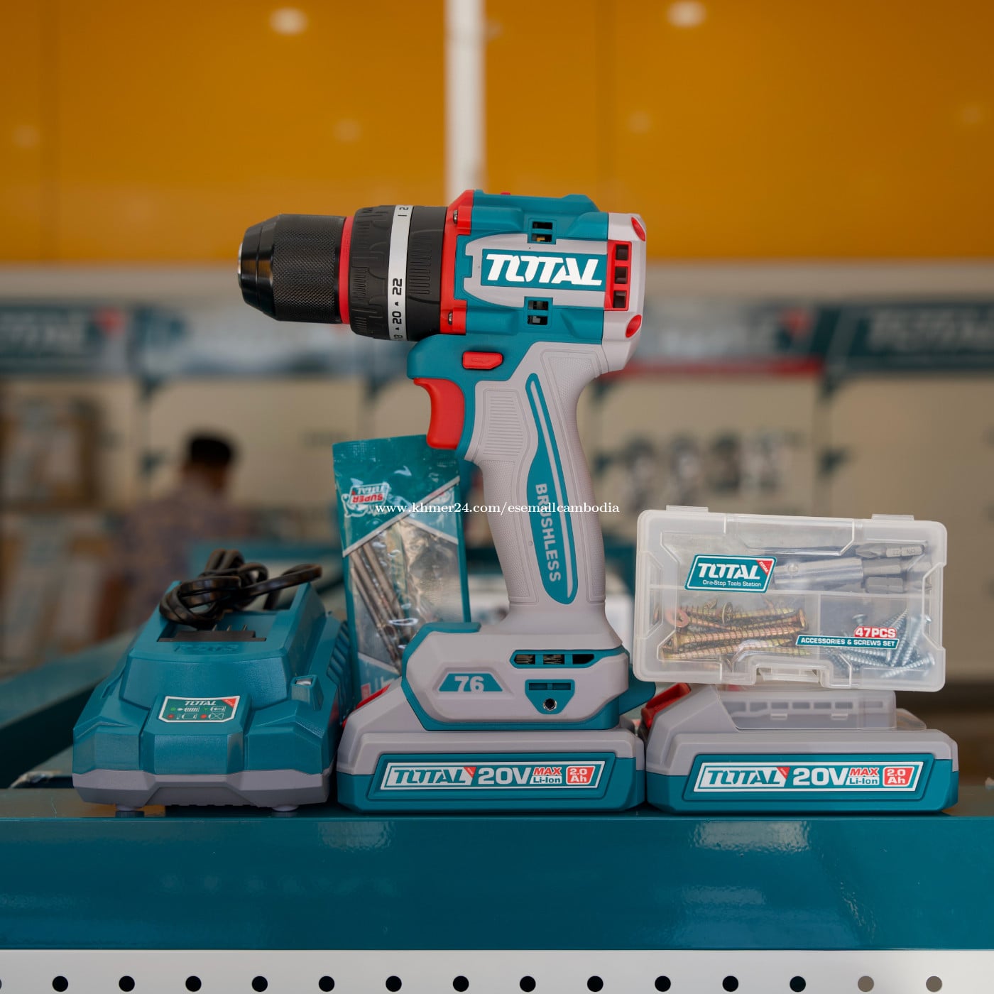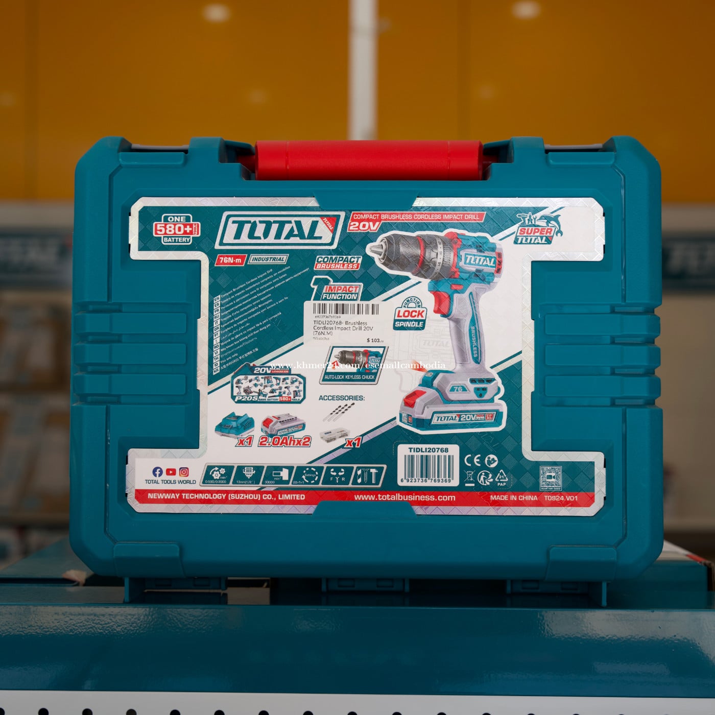 TOTAL 20V Brushless Cordless Impact Drill (ម៉ាស៊ីនខួង/វីស ប៉ះ អាគុយ 20V) – ម៉ូដែល (TIDLI20768) តម្លៃ៖ $103.50 សភាព៖ ថ្មី 100% ប្រភេទ៖ ម៉ាស៊ីនខួង/វីស អាគុយ / Power Tools ម៉ាក៖ TOTAL ម៉ូដែល៖ TIDLI20768 ⭐ ពណ៌នាផលិតផល TOTAL 20V Brushless Cordless Impact Drill ម៉ូដែល TIDLI20558 ជាម៉ាស៊ីនខួង និងវីសប្រើអាគុយ 20V បច្ចេកវិទ្យា Brushless Motor ដែលមានកម្លាំងខ្លាំង ប្រើបានយូរ និងសន្សំថាមពលជាងម៉ូទ័រធម្មតា។ មានមុខងារ Impact Function ជួយខួង និងវីសបានមានប្រសិទ្ធភាពលើឈើ ដែក និងជញ្ជាំង។ រចនារឹងមាំ កាន់ងាយ មិននឿយដៃ សាកសមសម្រាប់ការងារជាង ការងារសំណង់ និងការប្រើប្រាស់ក្នុងផ្ទះ។ ភ្ជាប់មកជាមួយអាគុយ 20V Li-ion ចំនួន 2 ដុំ ឧបករណ៍សាក និងប្រអប់រឹង ងាយស្រួលដឹកជញ្ជូន និងរក្សាទុក។ ⭐ លក្ខណៈបច្ចេកទេស (Specifications) វ៉ុល៖ 20V ប្រភេទម៉ូទ័រ៖ Brushless Motor ប្រភេទអាគុយ៖ Lithium-ion សមត្ថភាពអាគុយ៖ 2.0Ah × 2 ដុំ មុខងារ៖ Drill / Screw / Impact កម្លាំងបង្វិល (Max Torque):76Nm ចង្កេះបិទបើកល្បឿន (Variable Speed):មាន កំណត់កម្លាំងបង្វិល (Torque Settings):មាន Chuck៖ Keyless (ប្ដូរដែកខួងងាយ) ភ្លើង LED៖ មាន (ជួយបំភ្លឺកន្លែងធ្វើការ) វ៉ុលសាក៖ 220–240V ~ 50/60Hz 📦 ឧបករណ៍ភ្ជាប់ក្នុងប្រអប់ ម៉ាស៊ីន 20V Brushless Impact Drill អាគុយ Li-ion 20V 2.0Ah × 2 ឧបករណ៍សាក (Charger) ដែកខួង/ប៊ីត (តាមកញ្ចប់) ប្រអប់រឹង (Carrying Case) ⭐ អត្ថប្រយោជន៍ ✔ ម៉ូទ័រ Brushless កម្លាំងខ្លាំង និងប្រើបានយូរ ✔ មាន Impact Function ខួង និងវីសបានមានប្រសិទ្ធភាព ✔ អាគុយ 20V 2 ដុំ ប្ដូរប្រើបានជាប់ៗ ✔ រចនាកាន់ងាយ មិននឿយដៃ ✔ ស្តង់ដារ TOTAL រឹងមាំ សម្រាប់ការប្រើប្រាស់យូរអង្វែង 🏠 សាកសមសម្រាប់ ការងារជាង និងការងារសំណង់ ការងារជួសជុលក្នុងផ្ទះ ដំឡើងទូ សង្ហារឹម និងឧបករណ៍ផ្សេងៗ ខួងឈើ ដែក និងជញ្ជាំង