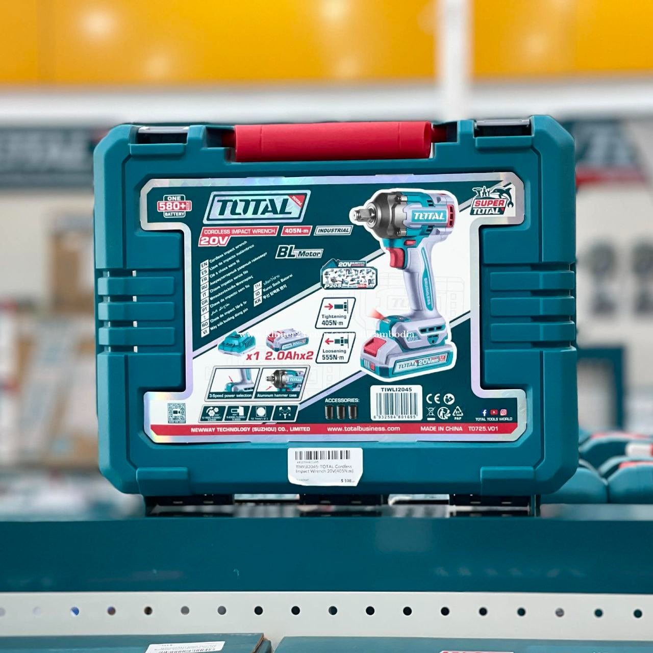 TOTAL 20V Brushless Cordless Impact Wrench (ម៉ាស៊ីនបុកប៉ះ អាគុយ 20V) (TIWLI2045) តម្លៃ៖ $107.90 សភាព៖ ថ្មី 100% ប្រភេទ៖ ម៉ាស៊ីនបុកប៉ះ / Impact Wrench អាគុយ ម៉ាក៖ TOTAL ⭐ ពណ៌នាផលិតផល ម៉ាស៊ីនបុកប៉ះ អាគុយ 20V បច្ចេកវិទ្យា Brushless Motor មានកម្លាំងខ្លាំង ប្រើបានយូរ និងសន្សំថាមពល។ ផ្តល់កម្លាំងបង្វិលខ្ពស់ សាកសមសម្រាប់ការងារបុកប៊ូលត៍/នាត់ធ្ងន់ៗ ការងារជាង និងសំណង់។ រចនារឹងមាំ កាន់ងាយ មានស្ថេរភាពល្អ និងប្រសិទ្ធភាពខ្ពស់ក្នុងការប្រើប្រាស់ប្រចាំថ្ងៃ។ ⭐ លក្ខណៈបច្ចេកទេស (Specifications) វ៉ុល៖ 20V ប្រភេទម៉ូទ័រ៖ Brushless Motor មុខងារ៖ Impact Wrench កម្លាំងបង្វិលអតិបរមា៖ 405 Nm ល្បឿន៖ 3 ជំហាន (3-Speed Selection) ប្រភេទ Chuck៖ Square Drive 1/2" ភ្លើង LED៖ មាន ប្រព័ន្ធអាគុយ៖ Li-ion សមត្ថភាពអាគុយ៖ 2.0Ah × 2 ដុំ វ៉ុលសាក៖ 220–240V ~ 50/60Hz 📦 ឧបករណ៍ភ្ជាប់ក្នុងប្រអប់ ម៉ាស៊ីន Impact Wrench 20V អាគុយ Li-ion 2.0Ah × 2 ឧបករណ៍សាក (Charger) Socket/ឧបករណ៍បន្ថែម (តាមកញ្ចប់) ប្រអប់រឹង (Carrying Case) ⭐ អត្ថប្រយោជន៍ ✔ Brushless Motor កម្លាំងខ្លាំង ប្រើបានយូរ ✔ Torque ខ្ពស់ សម្រាប់ការងារធ្ងន់ ✔ អាគុយ 2 ដុំ ប្ដូរប្រើបានជាប់ៗ ✔ កាន់ងាយ មិននឿយដៃ ✔ ស្តង់ដារ TOTAL រឹងមាំ និងទុកចិត្តបាន 🏠 សាកសមសម្រាប់ ការងារជាង និងសំណង់ ការបុកប៊ូលត៍/នាត់ធ្ងន់ៗ (រថយន្ត ឧស្សាហកម្ម) ការប្រើប្រាស់វិជ្ជាជីវៈ និងក្នុងផ្ទះ