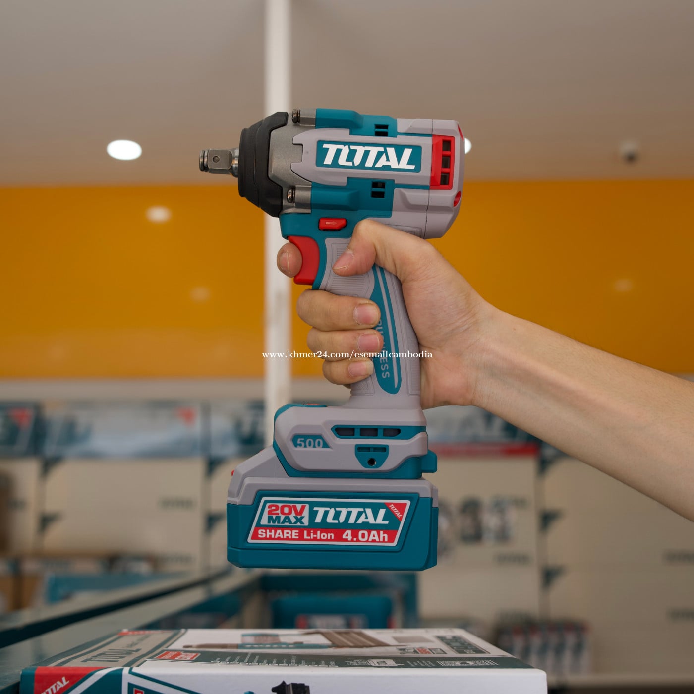TOTAL 20V Brushless Cordless Impact Wrench (ម៉ាស៊ីនប៉ះ អាគុយ 20V) (TIWLI2050) តម្លៃ៖ $135.00 សភាព៖ ថ្មី 100% ប្រភេទ៖ ម៉ាស៊ីនប៉ះ / Impact Wrench អាគុយ ម៉ាក៖ TOTAL ⭐ ពណ៌នាផលិតផល ម៉ាស៊ីនប៉ះ អាគុយ 20V បច្ចេកវិទ្យា Brushless Motor មានកម្លាំងខ្លាំង ប្រើបានយូរ និងសន្សំថាមពលជាងម៉ូទ័រធម្មតា។ សមស្របសម្រាប់ការងារប៉ះប៊ូលុង/ណាត់ធ្ងន់ៗ ដូចជា ការជួសជុលរថយន្ត ម៉ូតូ និងការងារសំណង់។ រចនារឹងមាំ កាន់ងាយ មិននឿយដៃ និងមានស្ថេរភាពខ្ពស់ក្នុងការប្រើប្រាស់យូរអង្វែង។ ភ្ជាប់មកជាមួយអាគុយ Li-ion 20V 4.0Ah ចំនួន 2 ដុំ, ឧបករណ៍សាក និងប្រអប់រឹង ងាយស្រួលដឹកជញ្ជូន និងរក្សាទុក។ ⭐ លក្ខណៈបច្ចេកទេស (Specifications) វ៉ុល៖ 20V ប្រភេទម៉ូទ័រ៖ Brushless Motor ប្រភេទម៉ាស៊ីន៖ Impact Wrench កម្លាំងបង្វិលអតិបរមា៖ 500 Nm ល្បឿន៖ 3 ជំហាន (3-Speed Selection) ប្រភេទ Chuck៖ Square Drive 1/2" ភ្លើង LED៖ មាន ប្រព័ន្ធអាគុយ៖ Lithium-ion សមត្ថភាពអាគុយ៖ 4.0Ah × 2 ដុំ វ៉ុលសាក៖ 220–240V ~ 50/60Hz 📦 ឧបករណ៍ភ្ជាប់ក្នុងប្រអប់ ម៉ាស៊ីន Impact Wrench 20V អាគុយ Li-ion 20V 4.0Ah × 2 ឧបករណ៍សាក (Charger) Socket/ឧបករណ៍បន្ថែម (តាមកញ្ចប់) ប្រអប់រឹង (Carrying Case) ⭐ អត្ថប្រយោជន៍ ✔ Brushless Motor កម្លាំងខ្លាំង និងប្រើបានយូរ ✔ Torque ខ្ពស់ សម្រាប់ការងារធ្ងន់ ✔ អាគុយ 4.0Ah 2 ដុំ ប្ដូរប្រើបានជាប់ៗ ✔ រចនាកាន់ងាយ មិននឿយដៃ ✔ ស្តង់ដារ TOTAL រឹងមាំ និងទុកចិត្តបាន 🏠 សាកសមសម្រាប់ ការងារជួសជុលរថយន្ត និងម៉ូតូ ការងារប៉ះប៊ូលុង/ណាត់ធ្ងន់ៗ ការងារជាង និងសំណង់ ការប្រើប្រាស់វិជ្ជាជីវៈ និងក្នុងផ្ទះ