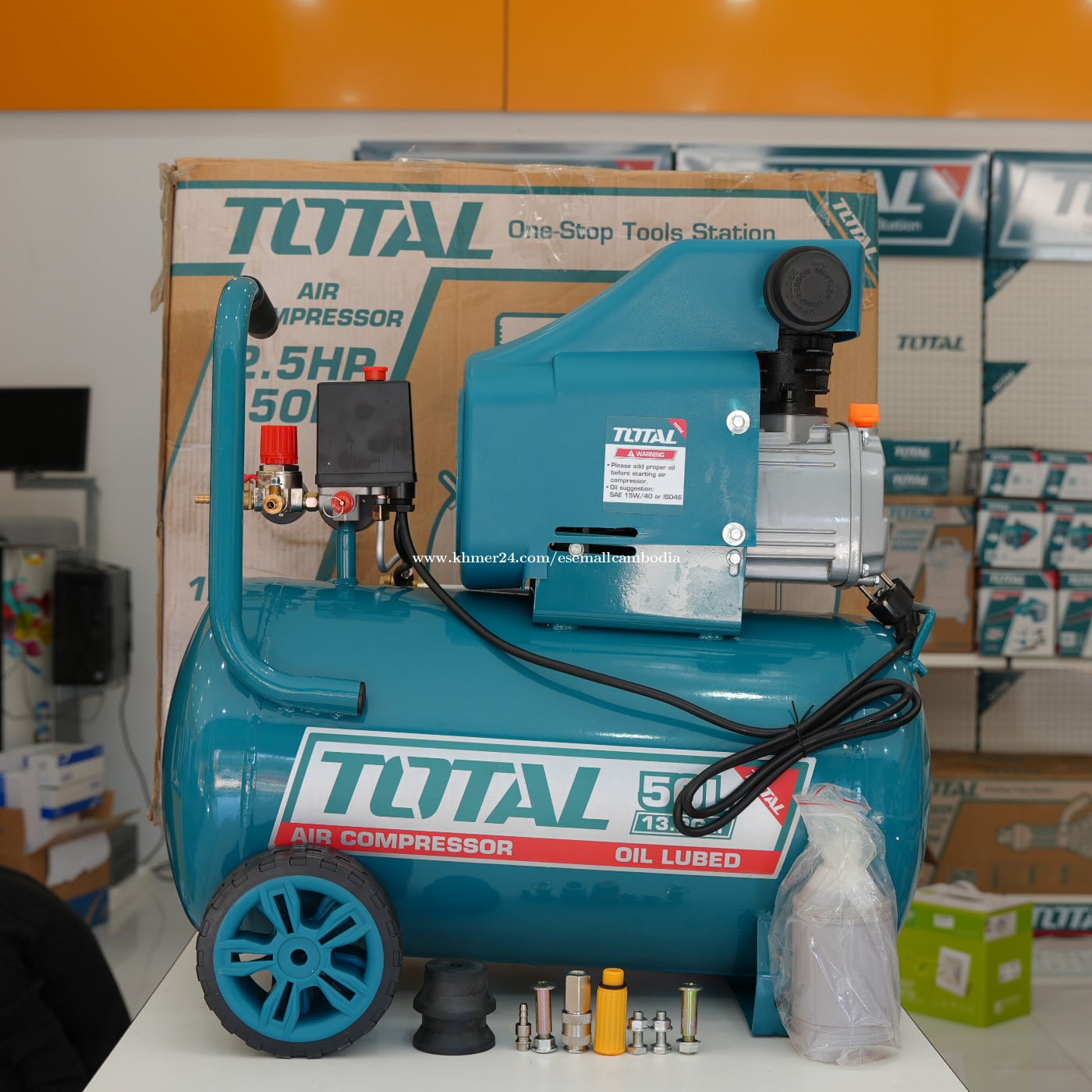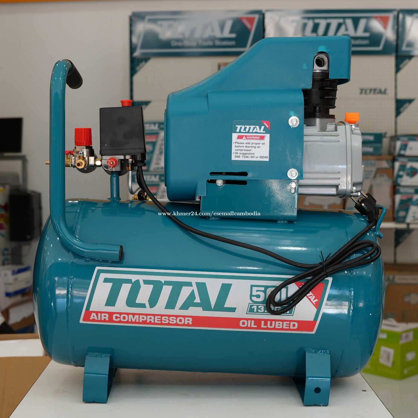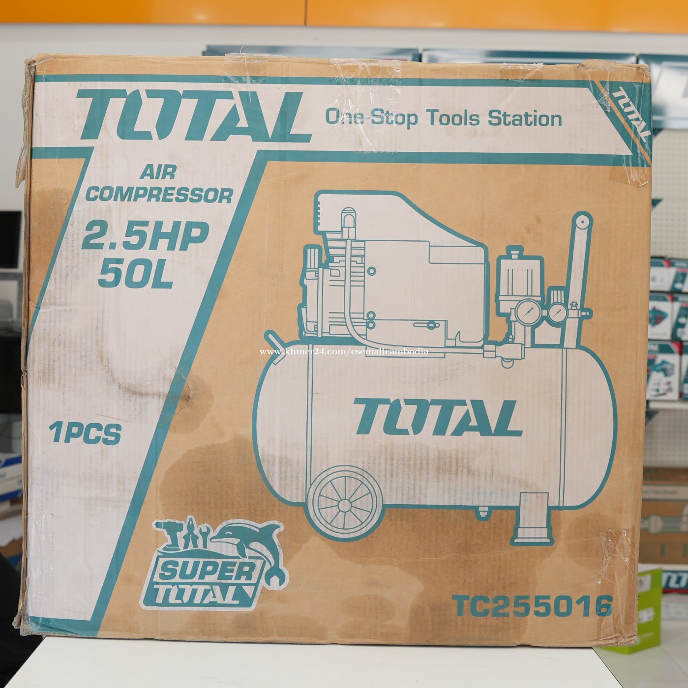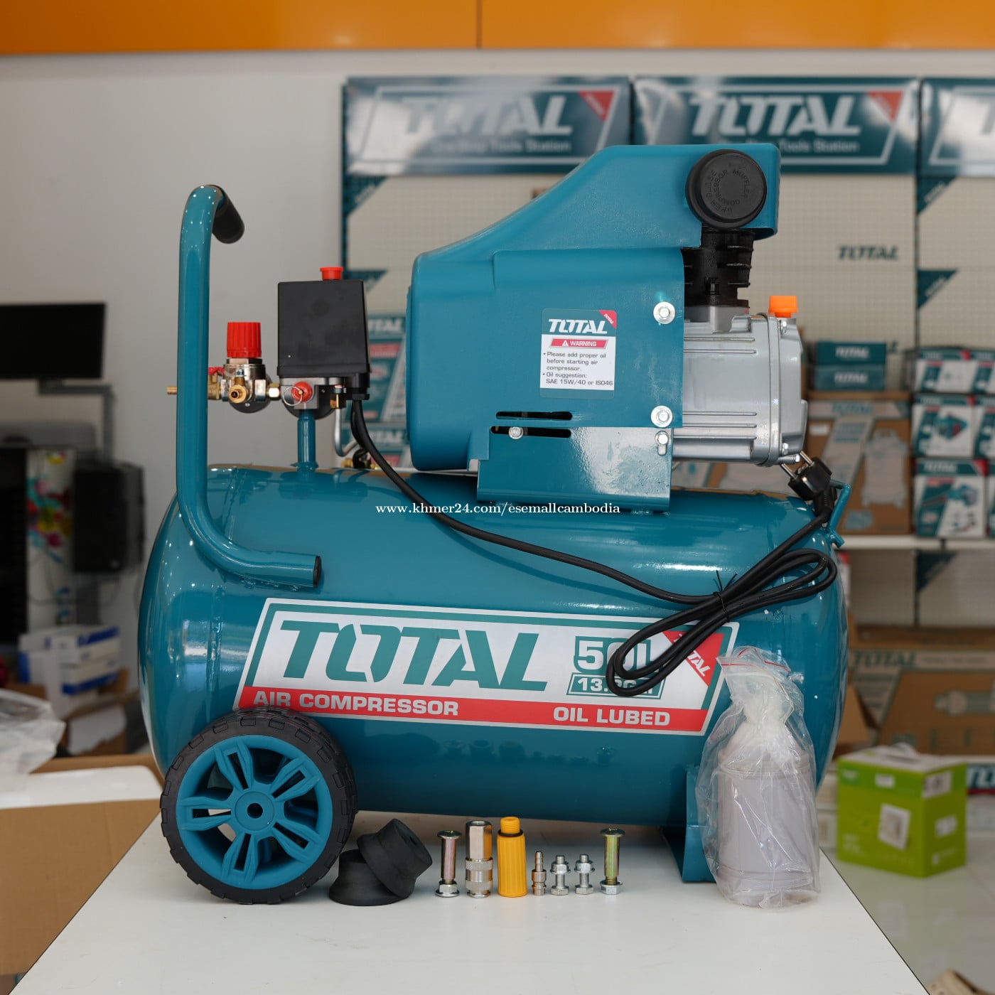 TOTAL Air Compressor 2.5HP 50L (TC255016) តម្លៃ: $208.00 សភាព: ថ្មី 100% ប្រភេទ: ម៉ាស៊ីនបូមខ្យល់ / Air Compressor ម៉ាក: TOTAL ម៉ូដែល: TC255016 ⭐ ពណ៌នាផលិតផល TOTAL Air Compressor TC255016 គឺជាម៉ាស៊ីនបូមខ្យល់ប្រភេទ Oil Lubed មានកម្លាំងម៉ូទ័រ 2.5HP និងធុងស្តុកខ្យល់ចំណុះ 50 លីត្រ សាកសមសម្រាប់ការប្រើប្រាស់ទូទៅ និងការងារឧស្សាហកម្មតូចៗ។ ម៉ាស៊ីនមានសមត្ថភាពបូមខ្យល់បានលឿន សម្ពាធស្ថិរភាព និងអាចភ្ជាប់ប្រើជាមួយឧបករណ៍ខ្យល់ជាច្រើនប្រភេទ ដូចជា កាំភ្លើងផ្លុំខ្យល់ កាំភ្លើងបាញ់ថ្នាំ បូមសំបកកង់ និងឧបករណ៍ជួសជុលផ្សេងៗ។ 🔍 លក្ខណៈបច្ចេកទេស (Specifications) ម៉ូដែល: TC255016 ប្រភេទ: Air Compressor (Oil Lubed) កម្លាំងម៉ូទ័រ: 2.5 HP ចំណុះធុងខ្យល់: 50 លីត្រ វ៉ុលភ្លើង: 220–240V ~ 50Hz សម្ពាធអតិបរមា: ប្រហែល 8 bar ប្រព័ន្ធបញ្ចេញសម្ពាធ និង Regulator មានកង់ និងដៃទាញ សម្រាប់ងាយស្រួលផ្លាស់ទី សម្ភារៈ: ដែកគុណភាពខ្ពស់ ប្រព័ន្ធលាបប្រេង: Oil Lubed (អាយុកាលប្រើប្រាស់បានយូរ) ⭐ អត្ថប្រយោជន៍ ✔ កម្លាំងខ្លាំង 2.5HP បូមខ្យល់បានលឿន ✔ ធុង 50L ស្តុកខ្យល់បានច្រើន ✔ សម្ពាធស្ថិរភាព សម្រាប់ឧបករណ៍ខ្យល់ច្រើនប្រភេទ ✔ រចនារឹងមាំ មានកង់ ងាយផ្លាស់ទី ✔ ប្រើប្រេង (Oil Lubed) ធន់ និងប្រើបានយូរ ✔ គុណភាពស្តង់ដារពី TOTAL 🏠 សាកសមសម្រាប់ រោងជាងជួសជុល ការងារបាញ់ថ្នាំ និងផ្លុំធូលី បូមសំបកកង់ ការប្រើប្រាស់ក្នុងផ្ទះ និង DIY ការងារឧស្សាហកម្មតូចៗ