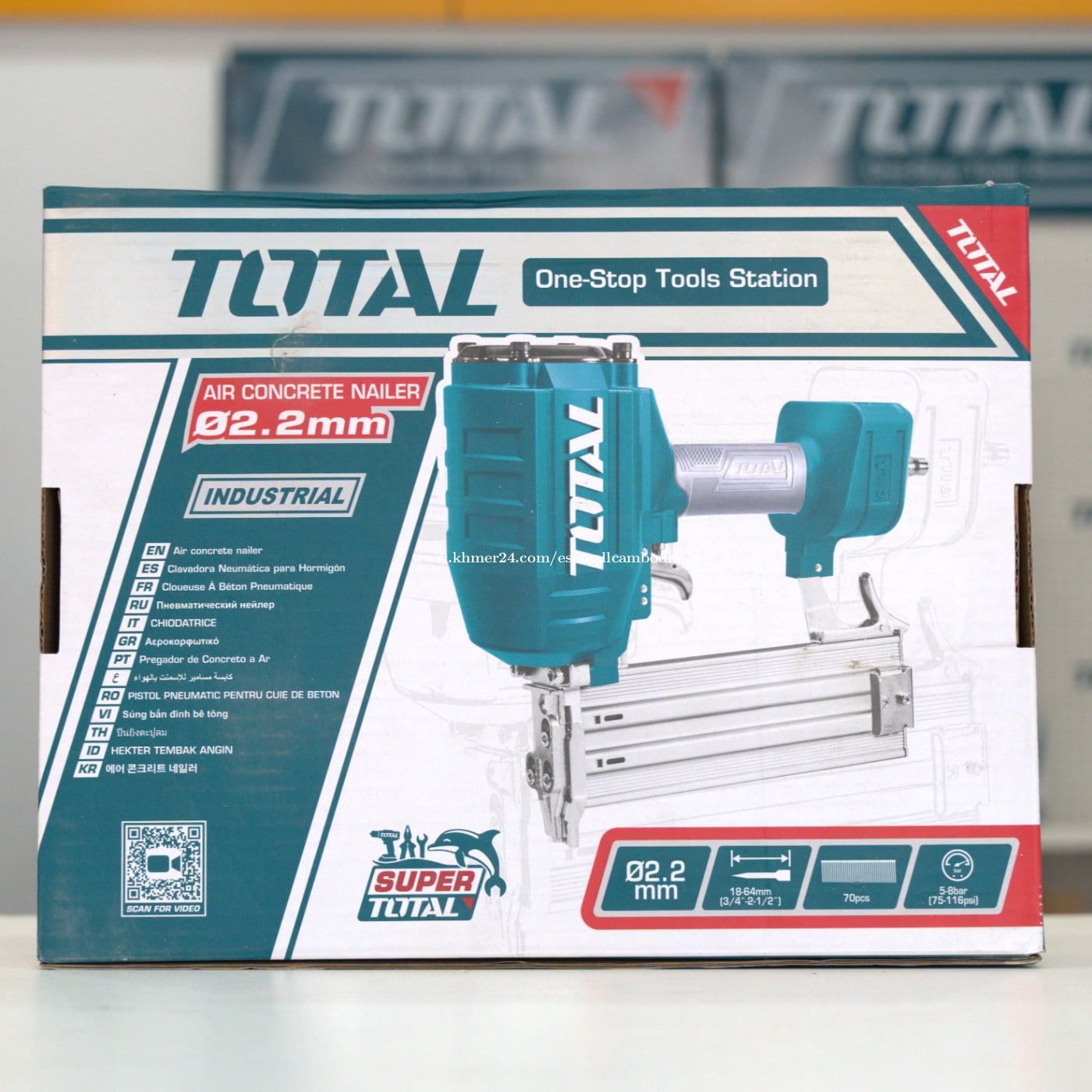 TOTAL Air Concrete Nailer Ø2.2mm (Industrial) តម្លៃ: $57.50 សភាព: ថ្មី 100% ប្រភេទ: ឧបករណ៍ខ្យល់ / Air Tools ម៉ាក: TOTAL ម៉ូដែល: (Air Concrete Nailer Ø2.2mm) ពណ៌នាផលិតផល TOTAL Air Concrete Nailer Ø2.2mm គឺជាម៉ាស៊ីនបាញ់ដែក/ខ្នាតដែកសម្រាប់បេតុង ប្រើប្រាស់ដោយខ្យល់ (Pneumatic) ដែលរចនាឡើងសម្រាប់ការងារដំឡើងលើបេតុង និងដែក។ មានកម្លាំងខ្លាំង បាញ់បានត្រឹមត្រូវ និងស្ថេរភាពល្អ សាកសមសម្រាប់ការងារឧស្សាហកម្ម និងការងារសំណង់ជាប្រចាំ។ រចនាផ្នែកកាន់ងាយ មិនធ្ងន់ដៃ និងមានប្រព័ន្ធសុវត្ថិភាពក្នុងការប្រើប្រាស់។ លក្ខណៈបច្ចេកទេស (Specifications) ប្រភេទ: Air Concrete Nailer (Pneumatic) អង្កត់ផ្ចិតដែក (Nail Diameter): Ø2.2 mm ប្រវែងដែក: 18–64 mm (3/4" – 2-1/2") សមត្ថភាពផ្ទុកដែក: 70 pcs សម្ពាធការងារ: 5–8 bar (75–116 psi) ប្រភេទខ្សែភ្ជាប់ខ្យល់: 1/4" កម្រិតប្រើប្រាស់: Industrial សម្ភារៈ: លោហៈរឹងមាំ គុណភាពខ្ពស់ អត្ថប្រយោជន៍ បាញ់ដែកចូលបេតុងបានរឹងមាំ និងត្រឹមត្រូវ ប្រើខ្យល់ កម្លាំងខ្លាំង ប្រសិទ្ធភាពខ្ពស់ កាន់ងាយ មិនធ្ងន់ដៃ ងាយគ្រប់គ្រង រចនារឹងមាំ សាកសមសម្រាប់ការងារប្រើប្រាស់យូរ សុវត្ថិភាព និងងាយថែទាំ សាកសមសម្រាប់ ការងារសំណង់ និងឧស្សាហកម្ម ដំឡើងលើបេតុង និងដែក រោងជាង និងគម្រោងធំៗ អ្នកជាងវិជ្ជាជីវៈ
