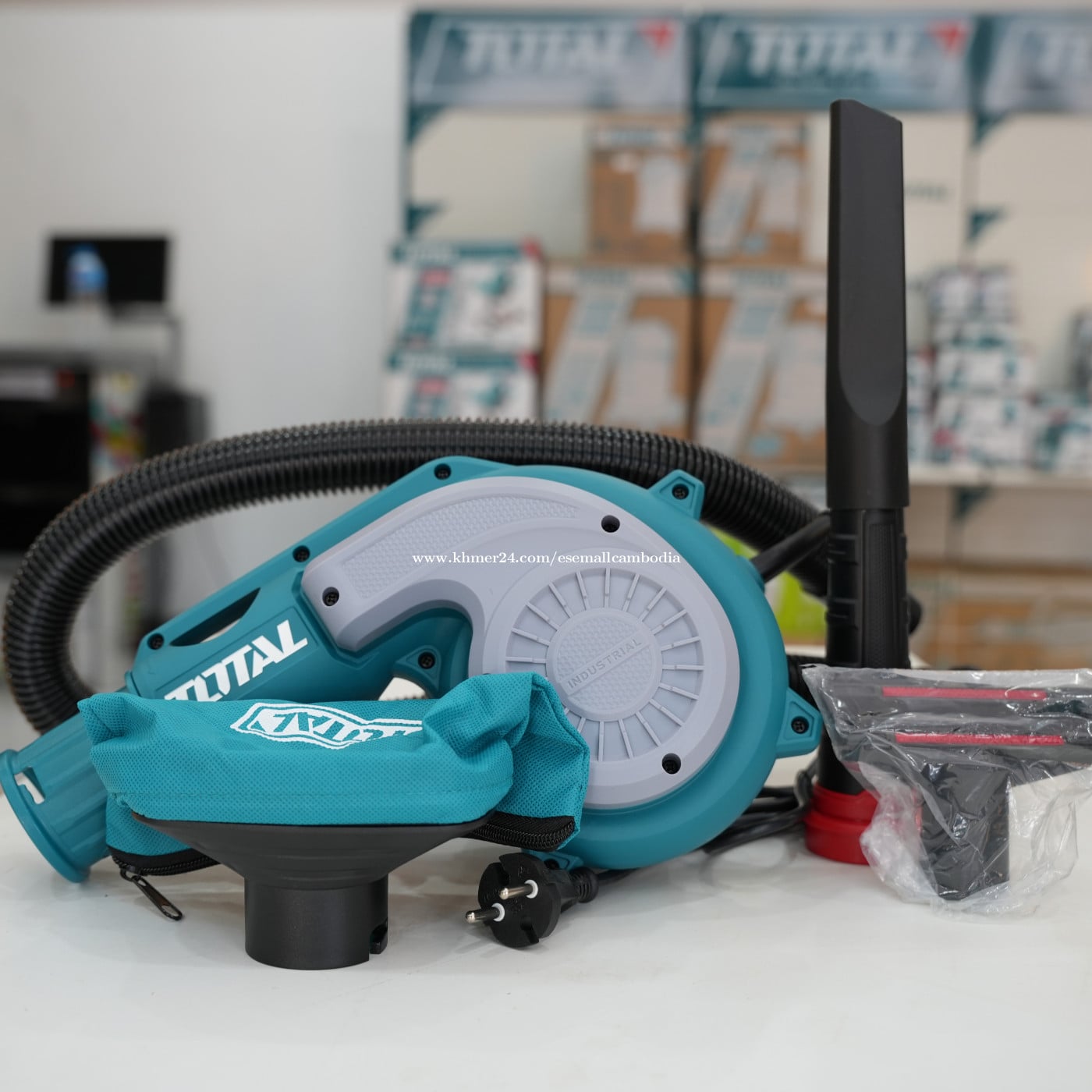 TOTAL Aspirator Blower 800W (Industrial) (TB8036) តម្លៃ: $48.00 សភាព: ថ្មី 100% ប្រភេទ: ម៉ាស៊ីនផ្លុំខ្យល់ / ម៉ាស៊ីនបូមធូលី (Blower & Vacuum) ម៉ាក: TOTAL ថាមពល: 800W ពណ៌នាផលិតផល TOTAL Aspirator Blower 800W គឺជាម៉ាស៊ីនផ្លុំខ្យល់ និងបូមធូលី 2-in-1 ដែលអាចប្រើបានទាំង ផ្លុំ (Blower) និង បូម (Vacuum) ក្នុងឧបករណ៍តែមួយ។ មានកម្លាំងម៉ូទ័រ 800W បាញ់ខ្យល់បានខ្លាំង សាកសមសម្រាប់សម្អាតធូលី កាកសំណល់ និងកន្លែងពិបាកឈានដល់ ដូចជា គ្រឿងអគ្គិសនី កុំព្យូទ័រ រោងជាង និងបរិវេណការងារ។ លក្ខណៈបច្ចេកទេស (Specifications) ប្រភេទ: Aspirator Blower / Vacuum ថាមពល: 800W អត្រាខ្យល់: 0 – 4.5 m³/min ល្បឿនបង្វិល: អថេរ (Variable Speed Control) មុខងារ: Blower & Vacuum (2-in-1) ប្រភេទស្វិត: Lock-on switch កម្រិតប្រើប្រាស់: Industrial វ៉ុល: AC 220–240V / 50–60Hz អត្ថប្រយោជន៍ មុខងារ 2-in-1 ផ្លុំ និងបូម ក្នុងម៉ាស៊ីនតែមួយ កម្លាំងខ្លាំង សម្អាតបានលឿន អាចបញ្ជាល្បឿនខ្យល់តាមការងារ កាន់ងាយ មិនធ្ងន់ដៃ រចនារឹងមាំ សាកសមសម្រាប់ការប្រើប្រាស់ជាប្រចាំ អ្វីដែលមានក្នុងប្រអប់ TOTAL Aspirator Blower 800W បំពង់ផ្លុំខ្យល់ បំពង់បូមធូលី ថង់ប្រមូលធូលី (Dust Bag) ឧបករណ៍ភ្ជាប់ (Accessories) សាកសមសម្រាប់ សម្អាតធូលីកុំព្យូទ័រ និងឧបករណ៍អគ្គិសនី រោងជាង និងការងារឧស្សាហកម្ម សម្អាតផ្ទះ ឬការិយាល័យ ការងារដែលត្រូវការខ្យល់កម្លាំងខ្លាំង