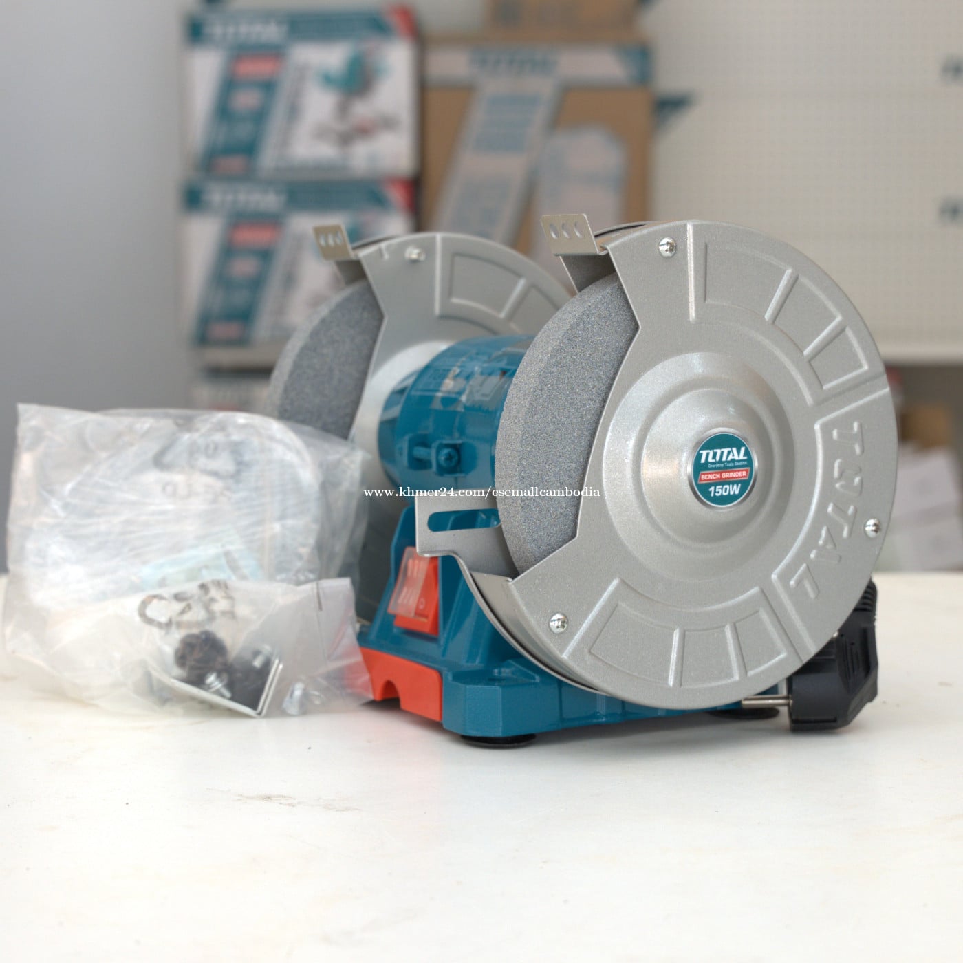 TOTAL Bench Grinder 150W (TBG15015) តម្លៃ: $33.80 សភាព: ថ្មី 100% ប្រភេទ: ឧបករណ៍អគ្គិសនី / Bench Grinder ម៉ាក: TOTAL ម៉ូដែល: TBG15015 ⭐ ពណ៌នាផលិតផល TOTAL Bench Grinder 150W (TBG15015) គឺជាម៉ាស៊ីនកិនតុដែលមានកម្លាំងម៉ូទ័រ 150W សាកសមសម្រាប់ការងារកិន ដុស ឬលៀនលោហៈ និងឧបករណ៍ផ្សេងៗនៅរោងជាង ឬការប្រើប្រាស់ក្នុងផ្ទះ។ រចនាមានថ្មកិនពីរខាង មានគម្របការពារ និងមូលដ្ឋានរឹងមាំ ធានាសុវត្ថិភាព និងស្ថេរភាពក្នុងពេលដំណើរការ។ 🔍 លក្ខណៈបច្ចេកទេស (Specifications) ម៉ូដែល: TBG15015 ប្រភេទ: Bench Grinder កម្លាំងម៉ូទ័រ: 150W វ៉ុលភ្លើង: 220–240V ~ 50/60Hz ល្បឿន (No-load): ប្រហែល 2950–3450 rpm អង្កត់ផ្ចិតថ្មកិន: 150 mm ចំនួនថ្មកិន: 2 (ខាងឆ្វេង/ស្ដាំ) មូលដ្ឋាន: រឹងមាំ សម្រាប់ដាក់លើតុ សម្ភារៈ: ដែក និងសម្ភារៈគុណភាពខ្ពស់ មាតិកាក្នុងប្រអប់: ម៉ាស៊ីន 1 គ្រឿង + គ្រឿងបន្លាស់តាមស្តង់ដារ ⭐ អត្ថប្រយោជន៍ ✔ កម្លាំង 150W សមស្របសម្រាប់ការងារកិនទូទៅ ✔ ថ្មកិន 150mm ប្រើបានទូលំទូលាយ ✔ គម្របការពារ បង្កើនសុវត្ថិភាព ✔ មូលដ្ឋានរឹង មិនរំញ័រ ✔ ប្រើងាយ ថែទាំងាយ ✔ គុណភាពស្តង់ដារពី TOTAL 🏠 សាកសមសម្រាប់ រោងជាងជួសជុល ការកិន និងលៀនឧបករណ៍លោហៈ ការប្រើប្រាស់ក្នុងផ្ទះ ការងារដៃ និង DIY