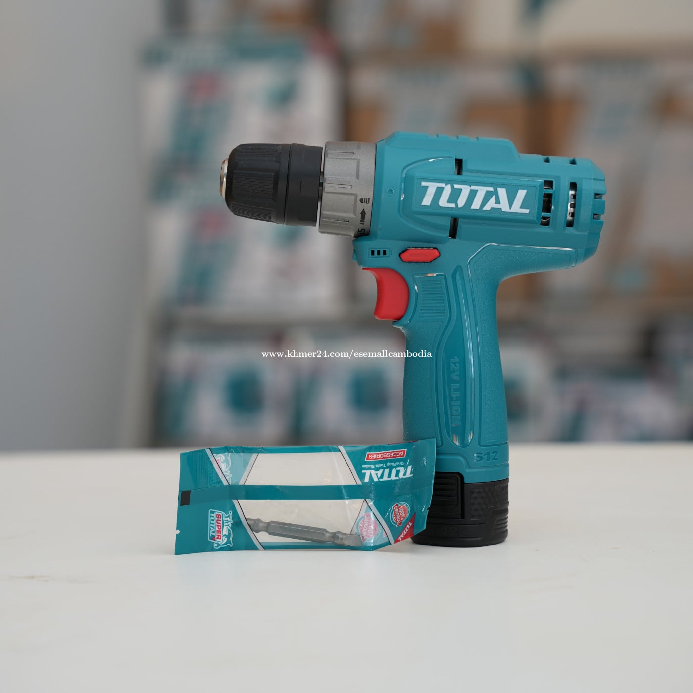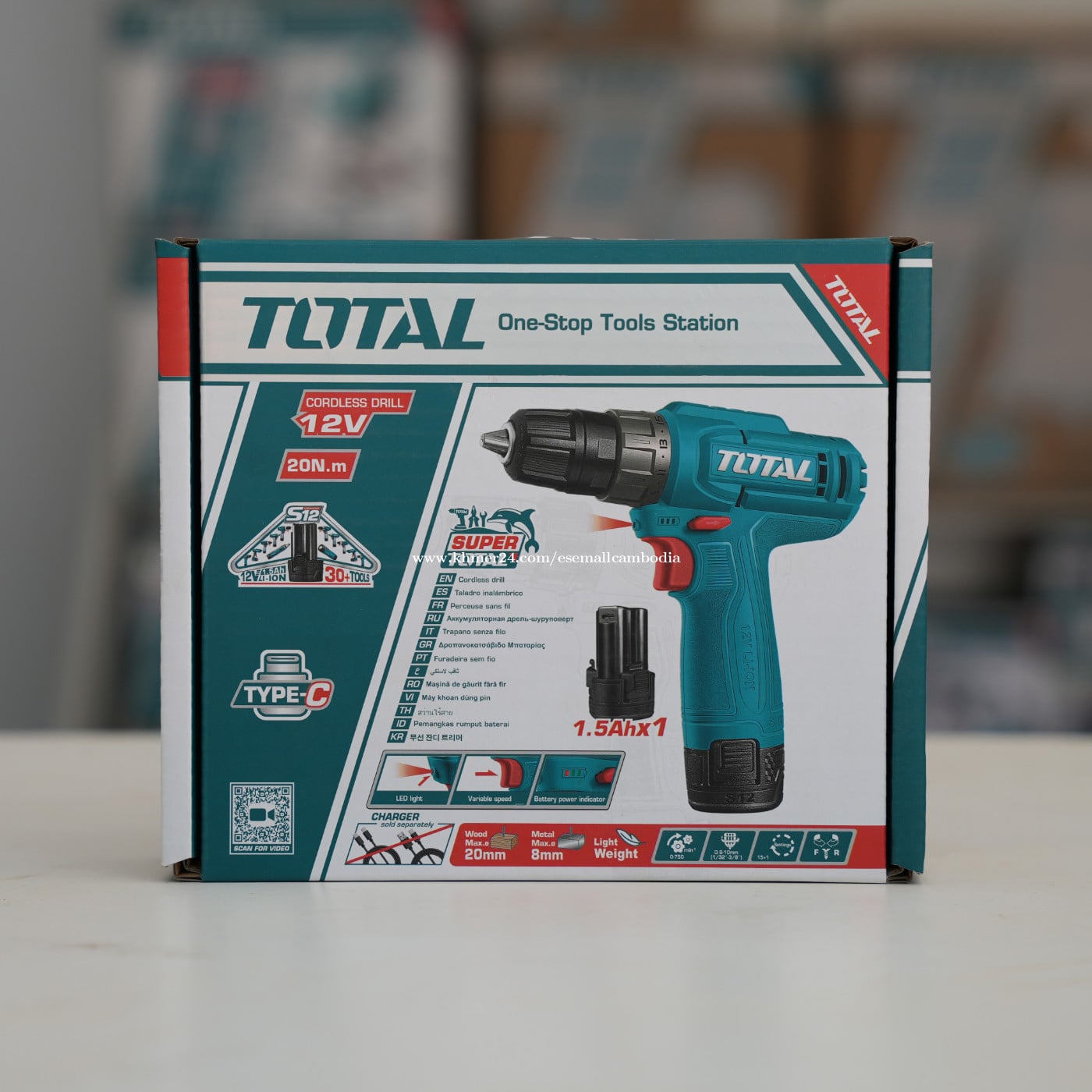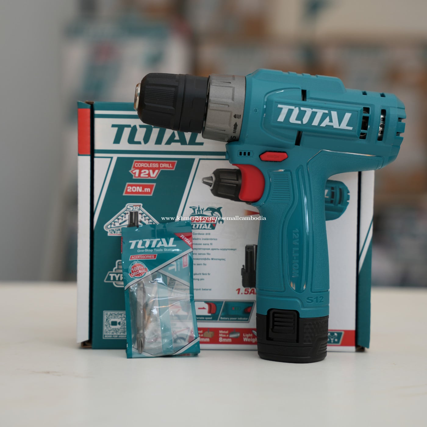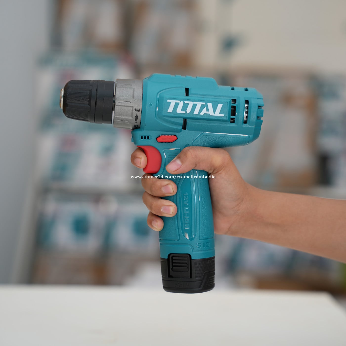 TOTAL Cordless Drill 12V 20Nm (Lithium-Ion) (TDLI12428) តម្លៃ៖ $25.00 សភាព៖ ថ្មី 100% ប្រភេទ៖ ម៉ាស៊ីនខួងឥតខ្សែ / Cordless Drill ម៉ាក៖ TOTAL វ៉ុលថាមពល៖ 12V ⭐ ពណ៌នាផលិតផល TOTAL Cordless Drill 12V គឺជាម៉ាស៊ីនខួង និងវីសឥតខ្សែ ប្រើថ្ម Lithium-Ion ដែលមានកម្លាំងបង្វិលអតិបរមា 20Nm សាកសមសម្រាប់ការងារខួង និងវីសទូទៅ។ រចនាបែបស្រាល ងាយកាន់ មានប៊ូតុងបញ្ជាល្បឿន និងបង្វិលទៅមុខ/ថយក្រោយ ធ្វើឲ្យការងាររហ័ស និងមានភាពត្រឹមត្រូវ។ សាកសមសម្រាប់ជាង និងការប្រើប្រាស់ក្នុងផ្ទះ។ 🔍 លក្ខណៈបច្ចេកទេស (Specifications) ប្រភេទ៖ Cordless Drill / Screwdriver វ៉ុលថាមពល៖ 12V កម្លាំងបង្វិលអតិបរមា (Torque):20 Nm ប្រភេទថ្ម៖ Lithium-Ion សមត្ថភាពថ្ម៖ 1.5Ah × 1 ដុំ ប្រព័ន្ធសាក៖ Type-C ក្បាលចាប់ដុំខួង (Chuck):Keyless ការបញ្ជាល្បឿន៖ Variable Speed ប្រព័ន្ធបង្វិល៖ Forward & Reverse សមត្ថភាពខួងឈើ៖ អតិបរមា 20mm សមត្ថភាពខួងដែក៖ អតិបរមា 8mm លក្ខណៈពិសេស៖ មានភ្លើង LED, សូចនាករថ្ម ម៉ាក៖ TOTAL 📦 អ្វីដែលមានក្នុងប្រអប់ ម៉ាស៊ីន TOTAL Cordless Drill 12V ថ្ម Lithium-Ion 1.5Ah × 1 ខ្សែសាក Type-C អាគុយស៊ីស / ដុំបិត (Accessories) ប្រអប់ក្រដាស TOTAL ⭐ អត្ថប្រយោជន៍ ✔ ឥតខ្សែ ងាយស្រួលប្រើគ្រប់ទីកន្លែង ✔ កម្លាំងបង្វិល 20Nm សម្រាប់ការងារទូទៅ ✔ សាក Type-C ប្រើងាយ និងទាន់សម័យ ✔ ទំហំតូច ស្រាល មិនធ្វើឲ្យដៃនឿយ ✔ បញ្ជាល្បឿន និងបង្វិលបានត្រឹមត្រូវ ✔ គុណភាពស្តង់ដារពី TOTAL 🏠 សាកសមសម្រាប់ ការងារជាងទូទៅ ការជួសជុលក្នុងផ្ទះ ដំឡើងគ្រឿងសង្ហារឹម ការងារ DIY ការប្រើប្រាស់ប្រចាំថ្ងៃ