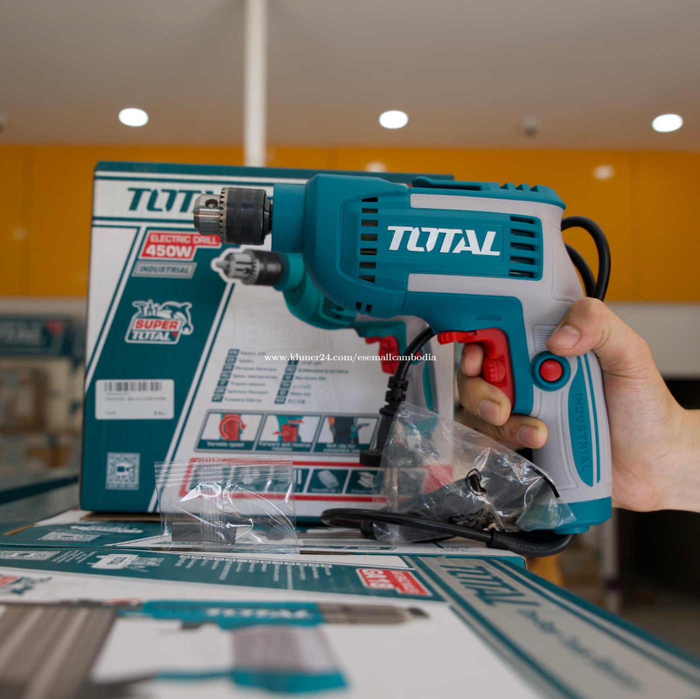 TOTAL Electric Drill 450W (TD45658) តម្លៃ៖ $24.00 សភាព៖ ថ្មី 100% ប្រភេទ៖ ឧបករណ៍អគ្គិសនី / Electric Drill ម៉ាក៖ TOTAL ម៉ូដែល៖ TD45658 ⭐ ពណ៌នាផលិតផល TOTAL Electric Drill 450W គឺជាម៉ាស៊ីនខួងអគ្គិសនីដែលមានកម្លាំង 450 វ៉ាត់ សាកសមសម្រាប់ការងារខួងទូទៅ ដូចជា ខួងឈើ ខួងដែក និងការងារជួសជុលក្នុងផ្ទះ ឬរោងជាង។ ម៉ាស៊ីនមានល្បឿនបង្វិលអាចកែតម្រូវបាន និងមុខងារបង្វិលទៅមុខ/ថយក្រោយ ងាយស្រួលប្រើ និងគ្រប់គ្រងបានល្អ។ រចនាខ្លួនម៉ាស៊ីនរឹងមាំ កាន់ងាយ មិនធ្ងន់ដៃ ប្រើបានយូរ និងមានសុវត្ថិភាព តាមស្តង់ដារ TOTAL។ 🔍 លក្ខណៈបច្ចេកទេស (Specifications) ម៉ូដែល៖ TD45658 ប្រភេទ៖ Electric Drill កម្លាំងអគ្គិសនី៖ 450W តង់ស្យុង៖ 220–240V~ ប្រេកង់៖ 50/60Hz ល្បឿនបង្វិល៖ 0–4400 rpm (អាចកែតម្រូវ) ប្រភេទចង្កាប់៖ Keyed Chuck ទំហំចង្កាប់៖ 1.5–6.5 mm (1/4") មុខងារ៖ បង្វិលទៅមុខ / ថយក្រោយ ខ្សែភ្លើង៖ មាន ម៉ាក៖ TOTAL ប្រទេសផលិត៖ China ⭐ អត្ថប្រយោជន៍ ✔ កម្លាំង 450W សាកសមសម្រាប់ការងារទូទៅ ✔ ល្បឿនអាចកែតម្រូវបាន ងាយប្រើ ✔ មានមុខងារបង្វិលទៅមុខ និងថយក្រោយ ✔ កាន់ងាយ មិនធ្ងន់ដៃ ✔ រចនារឹងមាំ ប្រើបានយូរ ✔ គុណភាពស្តង់ដារពី TOTAL 🏠 សាកសមសម្រាប់ ការងារជួសជុលក្នុងផ្ទះ រោងជាងតូច ខួងឈើ និងដែក អ្នកប្រើប្រាស់ទូទៅ និងជាង