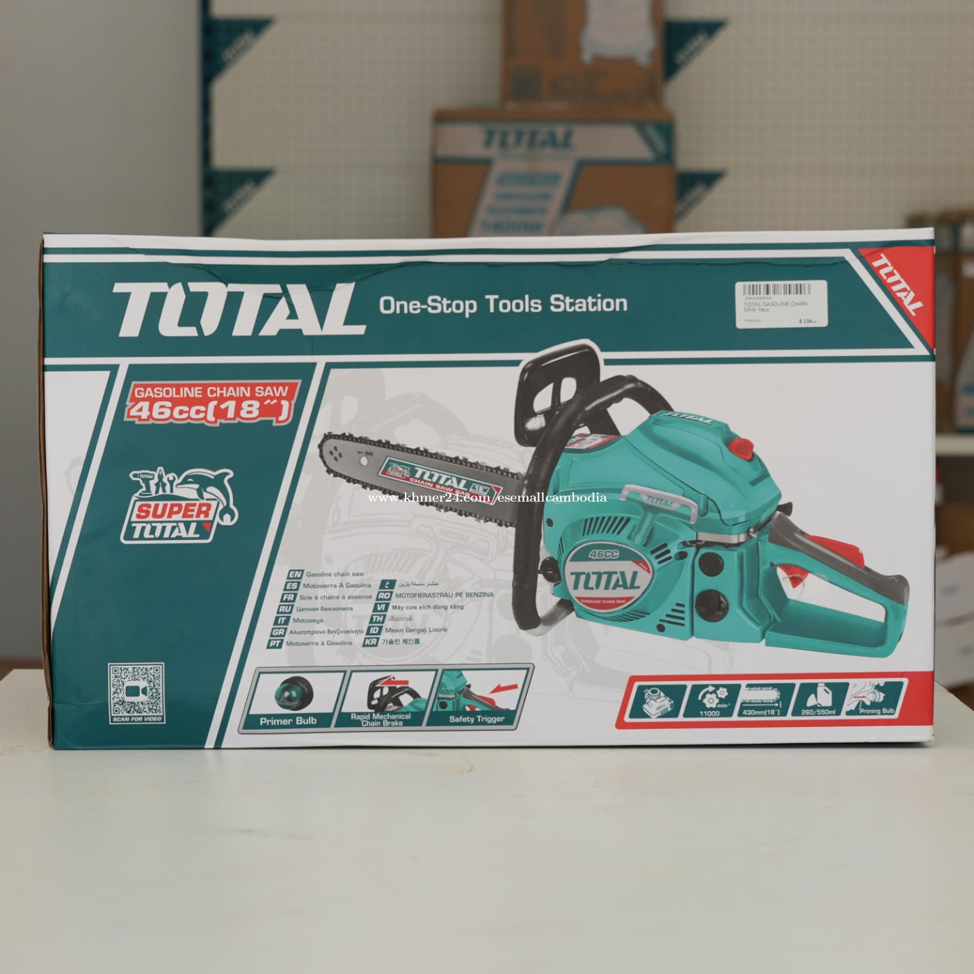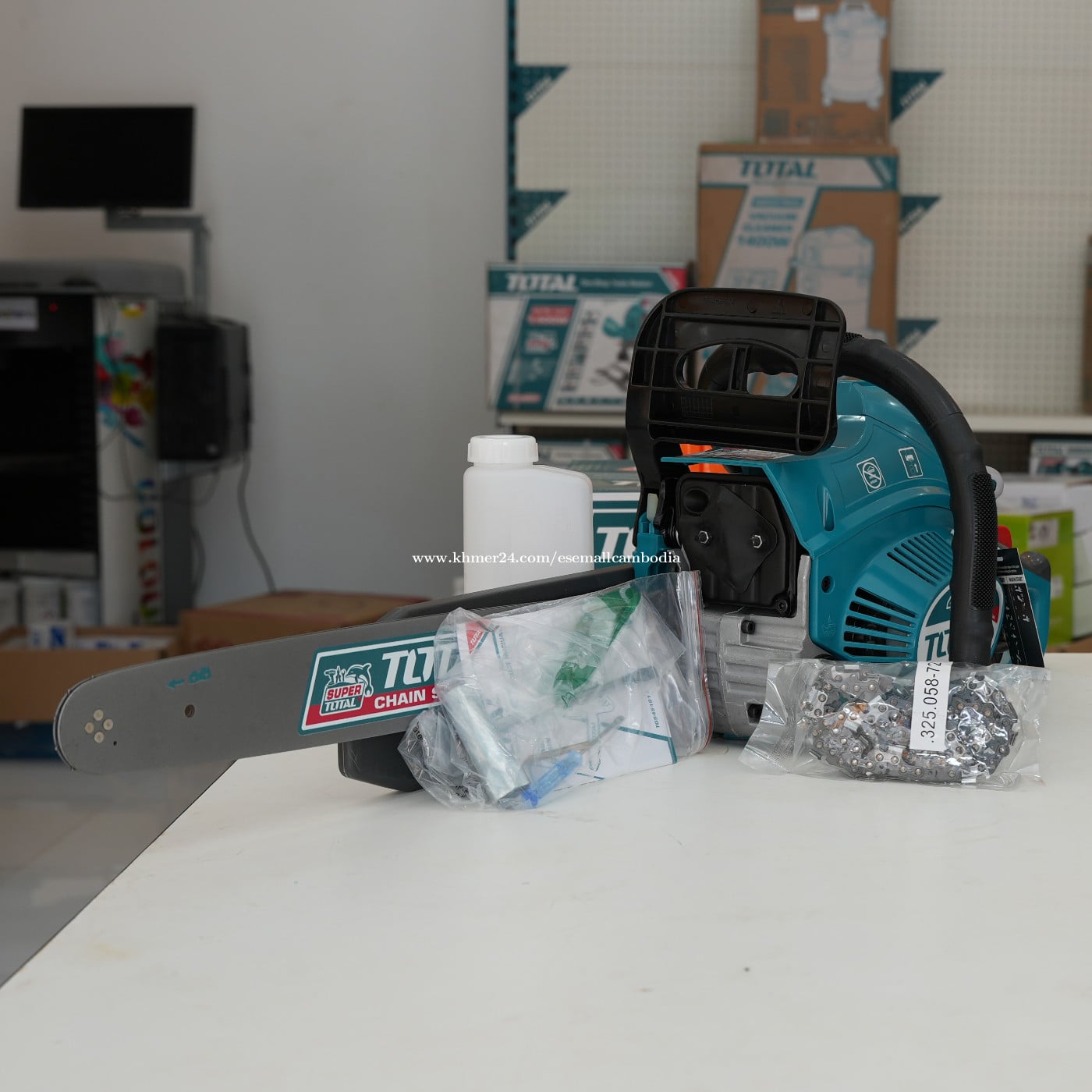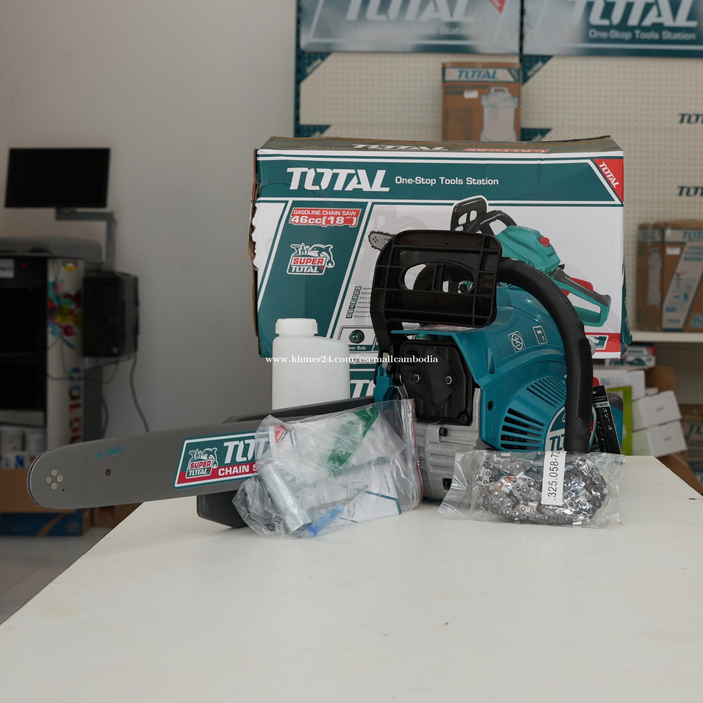 TOTAL Gasoline Chain Saw 46cc (18") – ម៉ាស៊ីនកាត់ឈើប្រើសាំង 46cc 18អ៊ីញ (TG5451811) តម្លៃ៖ $136.50 សភាព៖ ថ្មី 100% ប្រភេទ៖ ម៉ាស៊ីនកាត់ឈើ / Power Tools ម៉ាក៖ TOTAL ម៉ូដែល៖ Gasoline Chain Saw 46cc (18") ⭐ ពណ៌នាផលិតផល TOTAL Gasoline Chain Saw 46cc (18") គឺជាម៉ាស៊ីនកាត់ឈើប្រើសាំងដែលមានកម្លាំងខ្លាំង សាកសមសម្រាប់ការកាត់ឈើធំៗ កាត់ដើមឈើ កាត់សាខា និងការងារកសិកម្ម ឬការងារក្រៅផ្ទះ។ ម៉ាស៊ីនមានម៉ូទ័រ 46cc ផ្តល់កម្លាំងខ្លាំង កាត់បានលឿន និងមានស្ថេរភាព។ រចនាបែបរឹងមាំ មានប្រព័ន្ធ Chain Brake សុវត្ថិភាព, Primer Bulb សម្រាប់ចាប់ផ្តើមងាយស្រួល និងដៃកាន់ងាយប្រើ មិនធ្វើឲ្យនឿយដៃពេលធ្វើការយូរ។ ⭐ លក្ខណៈបច្ចេកទេស (Specifications) ប្រភេទម៉ាស៊ីន៖ Gasoline Chain Saw កម្លាំងម៉ូទ័រ៖ 46cc ប្រវែងដាវកាត់៖ 18 អ៊ីញ (18") ល្បឿនបង្វិលអតិបរមា៖ ប្រហាក់ប្រហែល 11,000 rpm ប្រព័ន្ធចាប់ផ្តើម៖ Pull Start + Primer Bulb ប្រព័ន្ធសុវត្ថិភាព៖ Chain Brake ប្រភេទប្រេង៖ សាំង (2-Stroke) ម៉ាក៖ TOTAL ⭐ អត្ថប្រយោជន៍ ✔ ម៉ូទ័រ 46cc កម្លាំងខ្លាំង កាត់ឈើបានលឿន ✔ ដាវកាត់ 18" សាកសមសម្រាប់ឈើធំ និងការងារធ្ងន់ ✔ មាន Chain Brake បង្កើនសុវត្ថិភាពពេលប្រើ ✔ Primer Bulb ចាប់ផ្តើមងាយ សន្សំពេលវេលា ✔ រចនារឹងមាំ ប្រើប្រាស់បានយូរ 🏠 សាកសមសម្រាប់ កាត់ដើមឈើ និងសាខាឈើ ការងារកសិកម្ម និងសួនច្បារ ការងារសាងសង់ និងកាប់ឈើ ការប្រើប្រាស់ក្រៅផ្ទះ និងការងារអាជីព