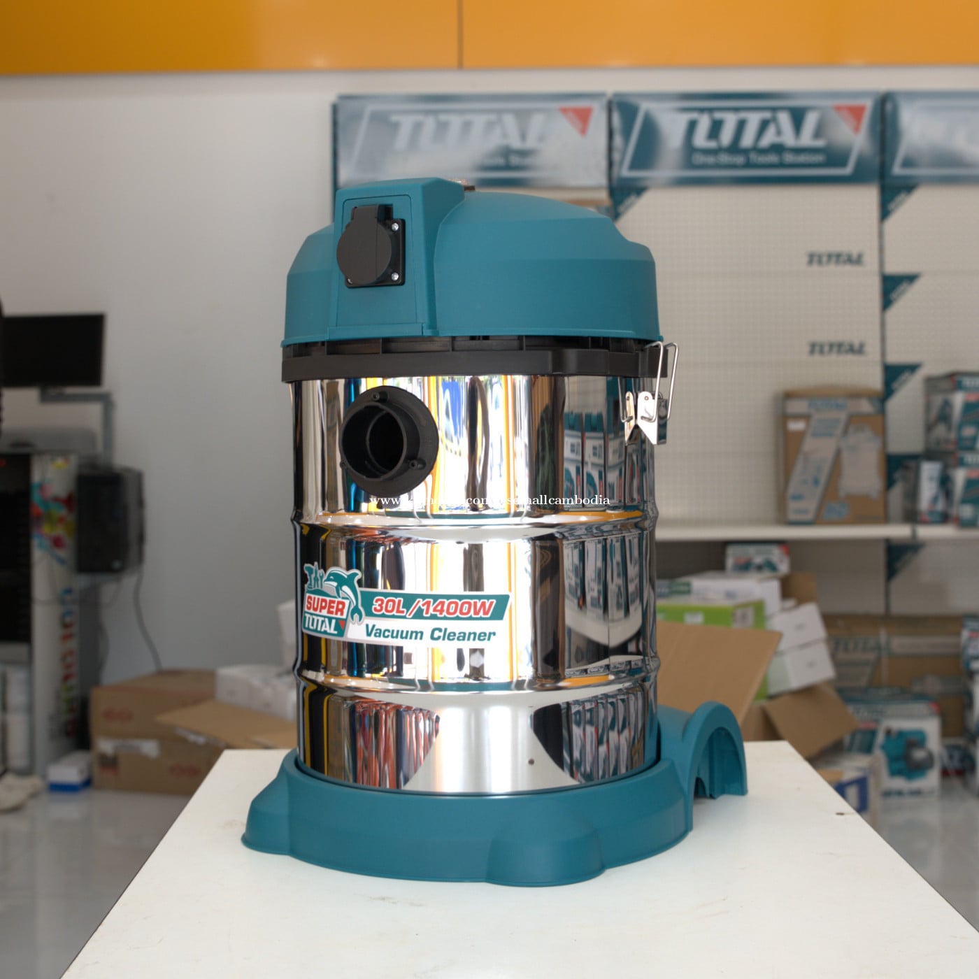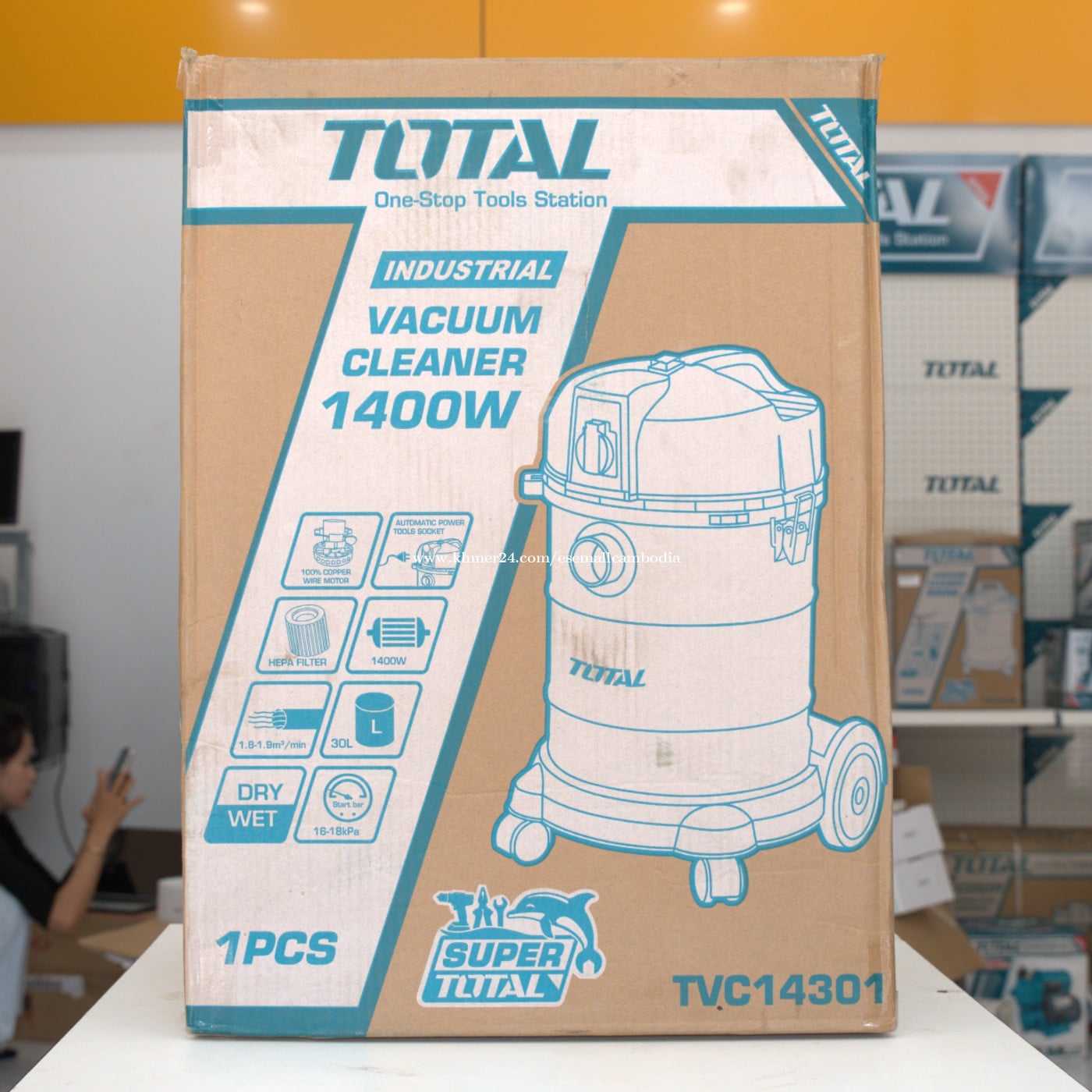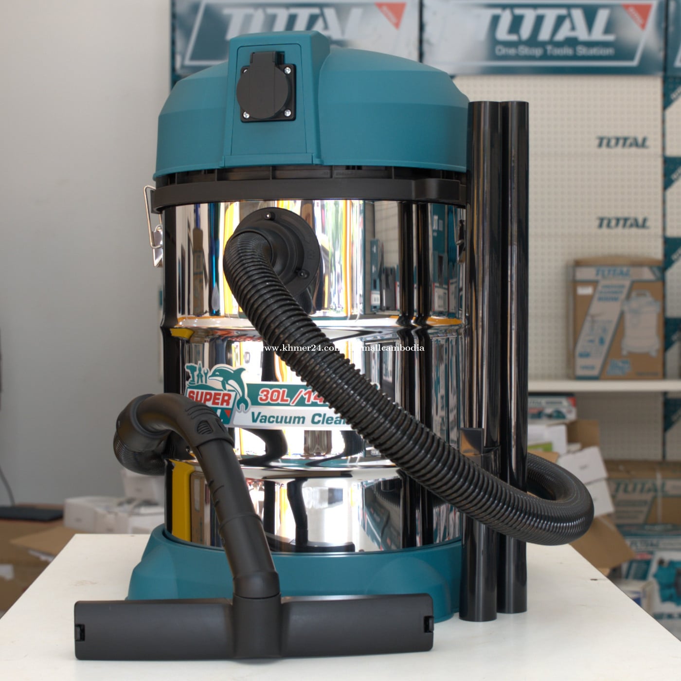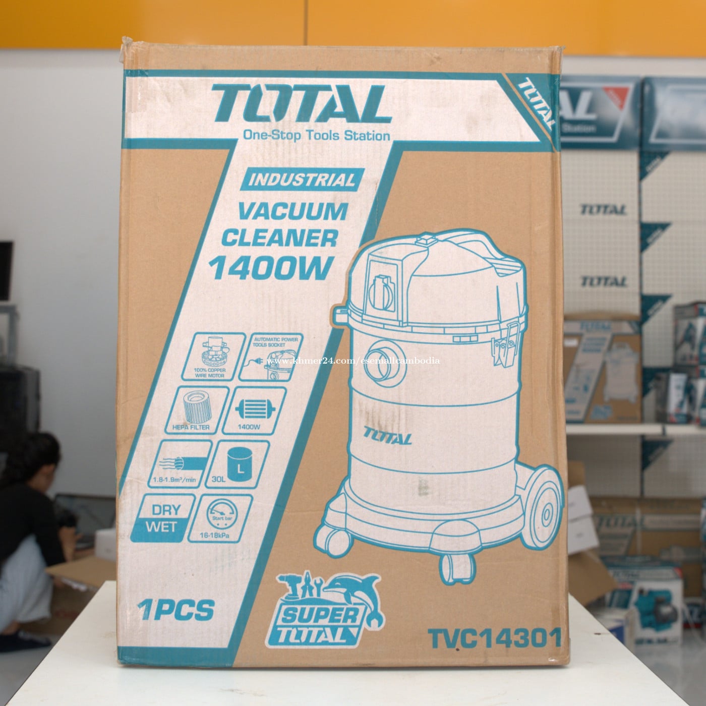 TOTAL Industrial Vacuum Cleaner 1400W (30L) (TVC14301) តម្លៃ៖ $136.50 សភាព៖ ថ្មី 100% ប្រភេទ៖ ម៉ាស៊ីនបូមធូលី / Power Tools ម៉ាក៖ TOTAL ម៉ូដែល៖ TVC14301 ពណ៌នាផលិតផល TOTAL Industrial Vacuum Cleaner 1400W គឺជាម៉ាស៊ីនបូមធូលីប្រភេទឧស្សាហកម្ម (Industrial) អាចបូមបានទាំងធូលី និងទឹក (Dry & Wet) មានថាមពលម៉ូទ័រ 1400W កម្លាំងខ្លាំង បូមបានលឿន និងមានប្រសិទ្ធភាពខ្ពស់។ ធុងដែកអ៊ីណុកចំណុះ 30 លីត្រ រឹងមាំ មិនច្រេះ សាកសមសម្រាប់ការងារធ្ងន់ៗ ដូចជា រោងជាង សំណង់ និងរោងចក្រ។ រចនាមានកង់ ងាយផ្លាស់ទី និងងាយថែទាំ។ លក្ខណៈបច្ចេកទេស (Specifications) ប្រភេទ៖ Industrial Vacuum Cleaner (Dry & Wet) ថាមពលម៉ូទ័រ៖ 1400W វ៉ុលភ្លើង៖ 220–240V ~ 50/60Hz សមត្ថភាពធុង៖ 30 លីត្រ សម្ភារៈធុង៖ Stainless Steel (ដែកអ៊ីណុក) ប្រភេទប្រើប្រាស់៖ Electric (ខ្សែភ្លើង) កម្លាំងស្រូប៖ 16–18 kPa ល្បឿនខ្យល់៖ 1.8–1.9 m³/min ប្រភេទការងារ៖ Industrial ពណ៌៖ ខៀវ / ដែក (TOTAL Design) អត្ថប្រយោជន៍ ម៉ូទ័រកម្លាំងខ្លាំង 1400W បូមបានទាំងធូលី និងទឹក (Dry & Wet) ធុងដែកអ៊ីណុក 30L រឹងមាំ មិនច្រេះ មានកង់ ងាយផ្លាស់ទី សម្ភារៈភ្ជាប់ពេញលេញ ងាយប្រើ និងងាយថែទាំ សាកសមសម្រាប់ រោងជាង និងរោងចក្រ ការងារសំណង់ និងសម្អាតធ្ងន់ៗ សម្អាតការិយាល័យ ឃ្លាំង និងផ្ទះ អ្នកជាង និងអ្នកប្រើប្រាស់វិជ្ជាជីវៈ